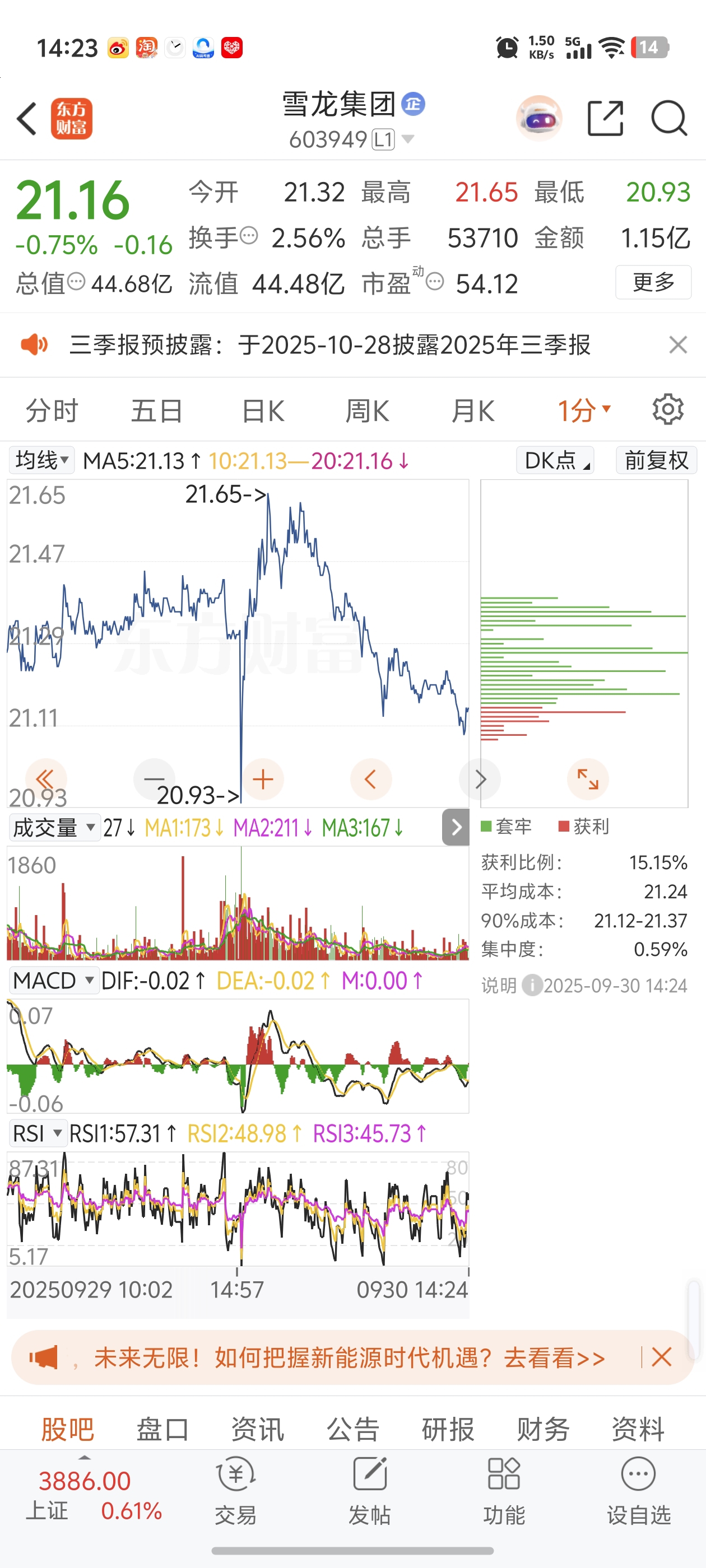 $雪龙集团(SH603949)$ 看看分时就知道了拉不上去就要杀下来,主力节前不想花钱而已,你也是人你愿意节前花钱给散户抬轿子么