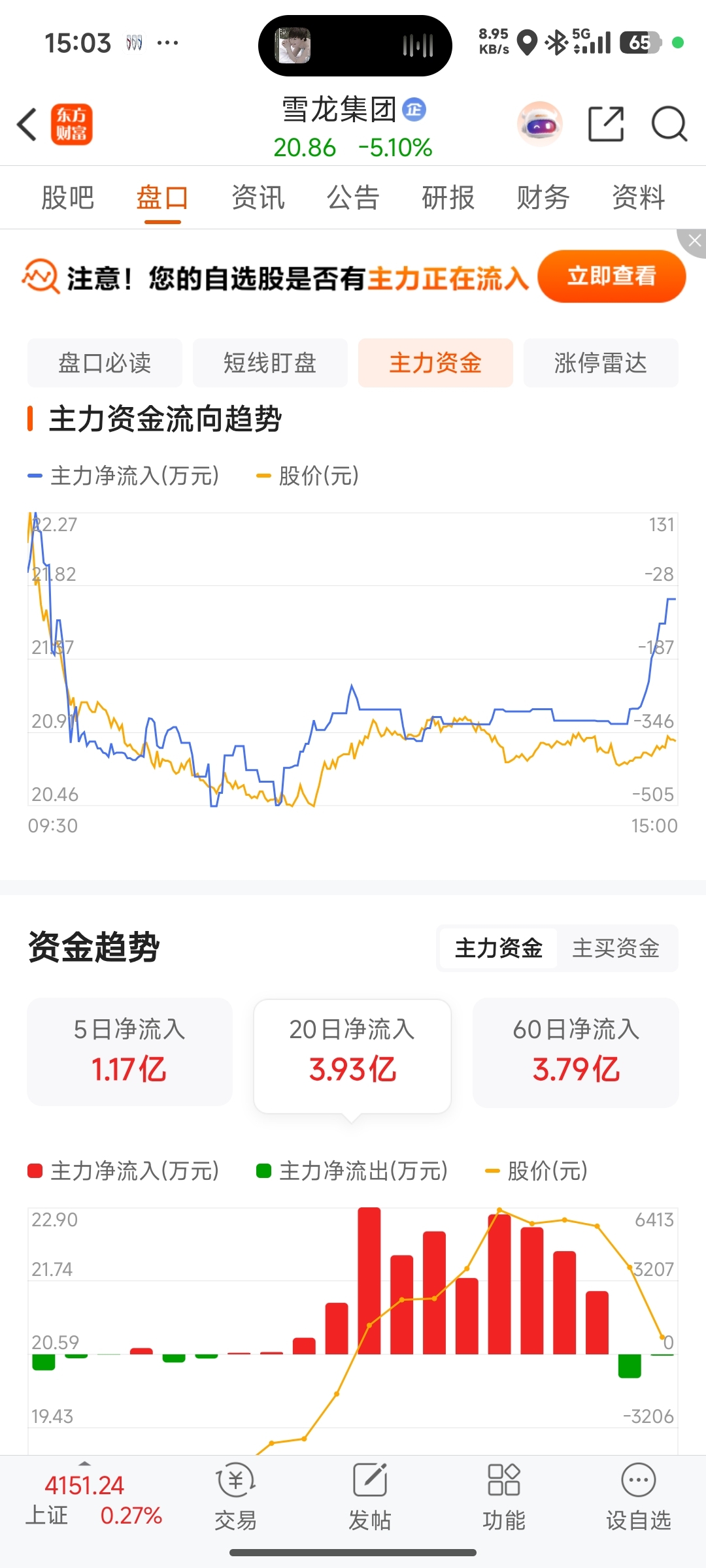 $雪龙集团(SH603949)$ 感觉在高度控盘啊,近20天一直在买,出货也只是一点点,价格就下来这么多,然后在尾盘价格低的时候又悄悄地吸筹,难道明天准备拉一波了???