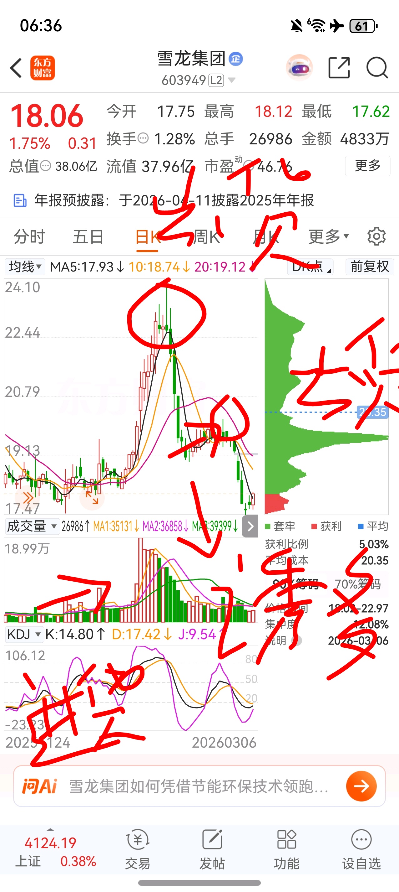 $雪龙集团(SH603949)$ 主力玩的很6,如果这里没持续放量,就走五段下跌,这里继续横盘不排除继续诱多