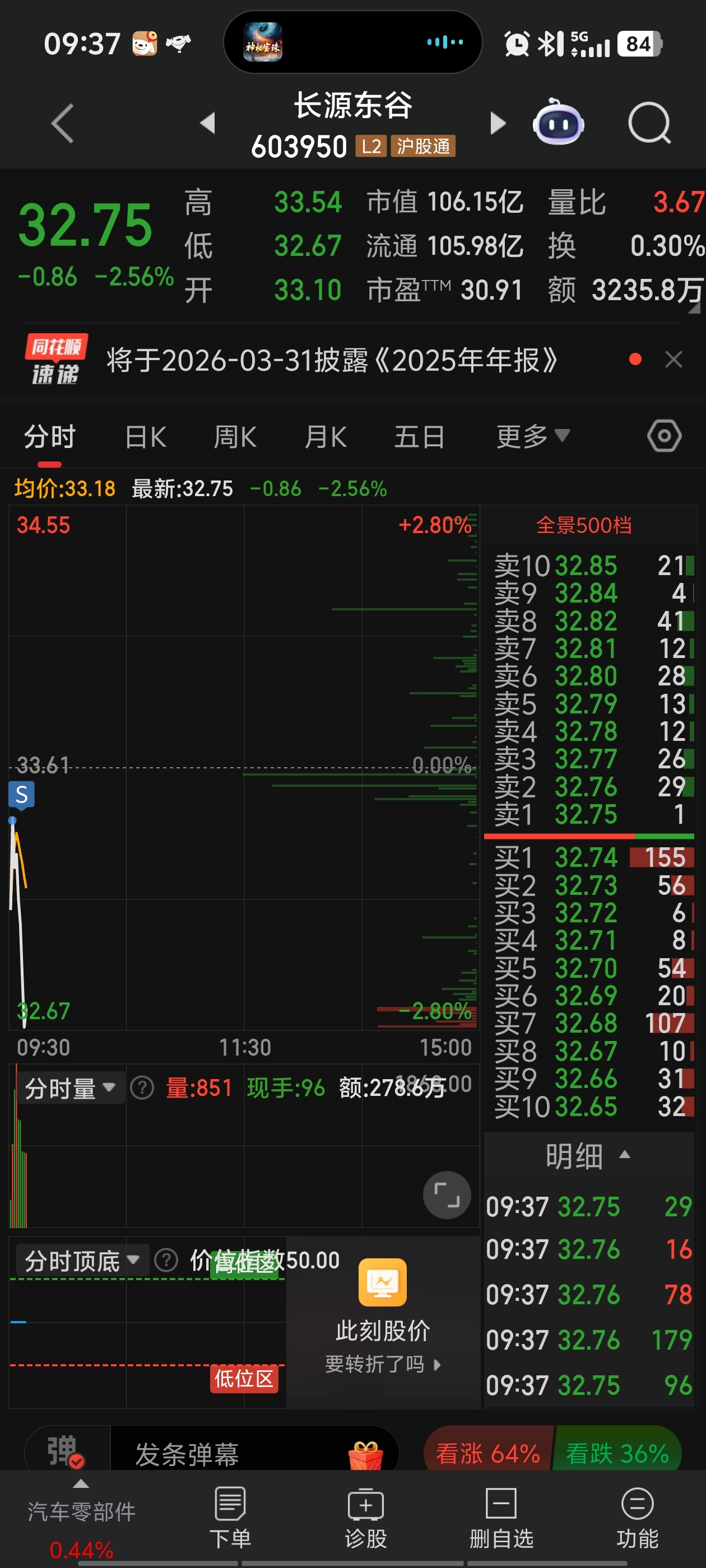 $长源东谷(SH603950)$ 昨天负一个点买的!早上走了!感谢老铁们!