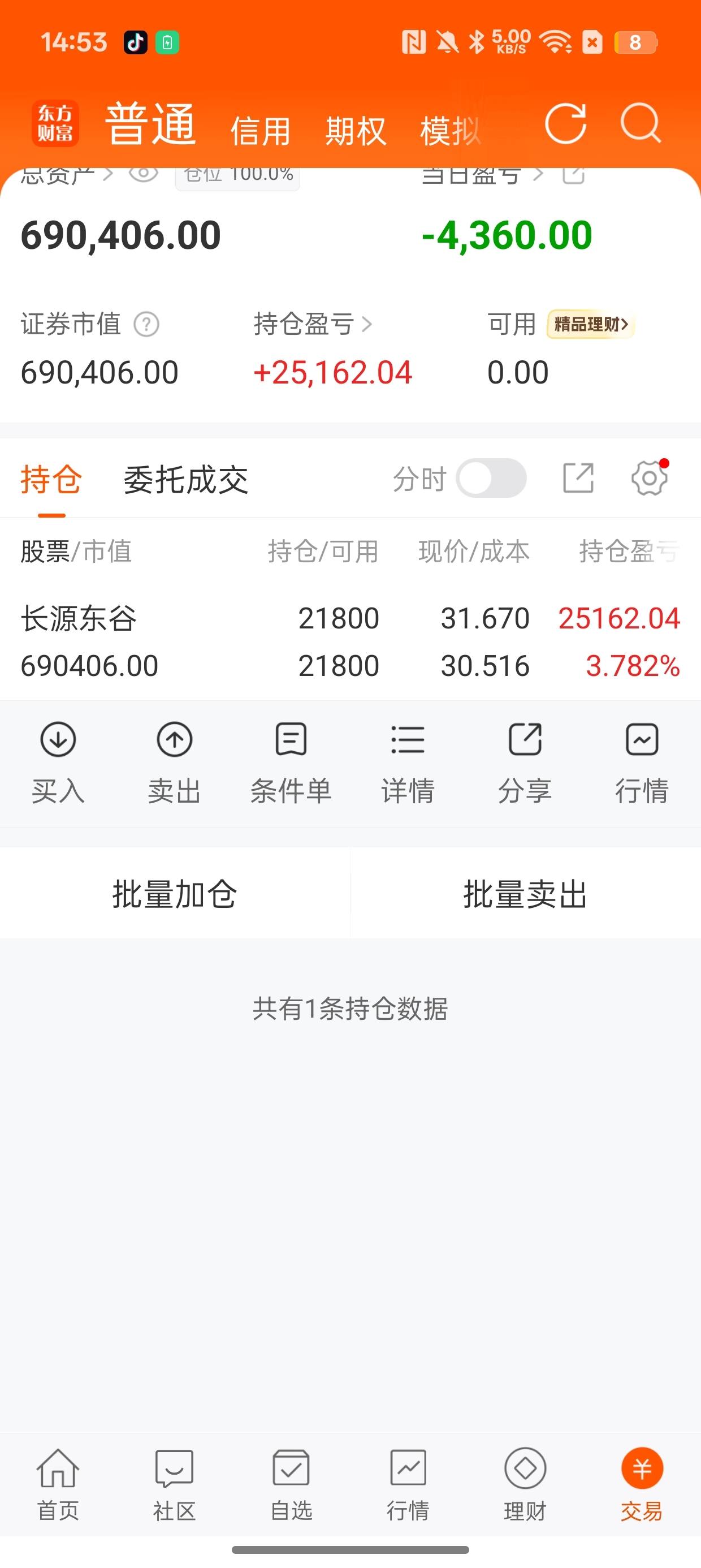 这两天做t还有些收益,今天波动不大,没动,有种继续砸盘,来刚一下子