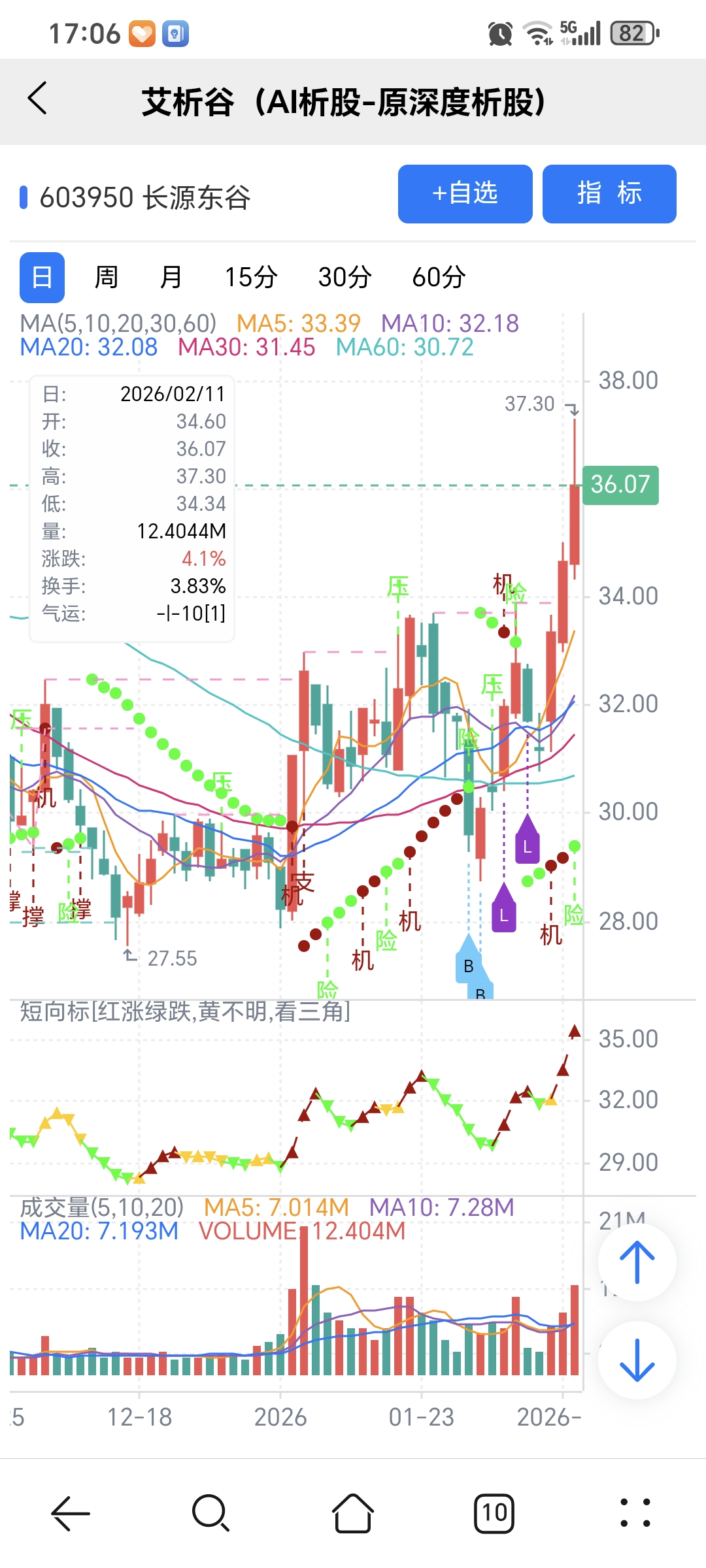 机会:股价上穿艾短波或绿变红、红字;