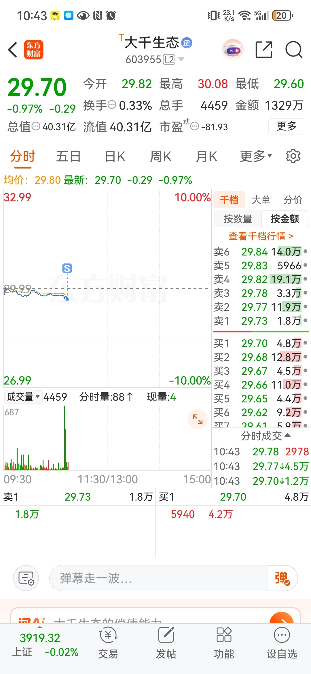 $大千生态(SH603955)$ 一卖就拉?