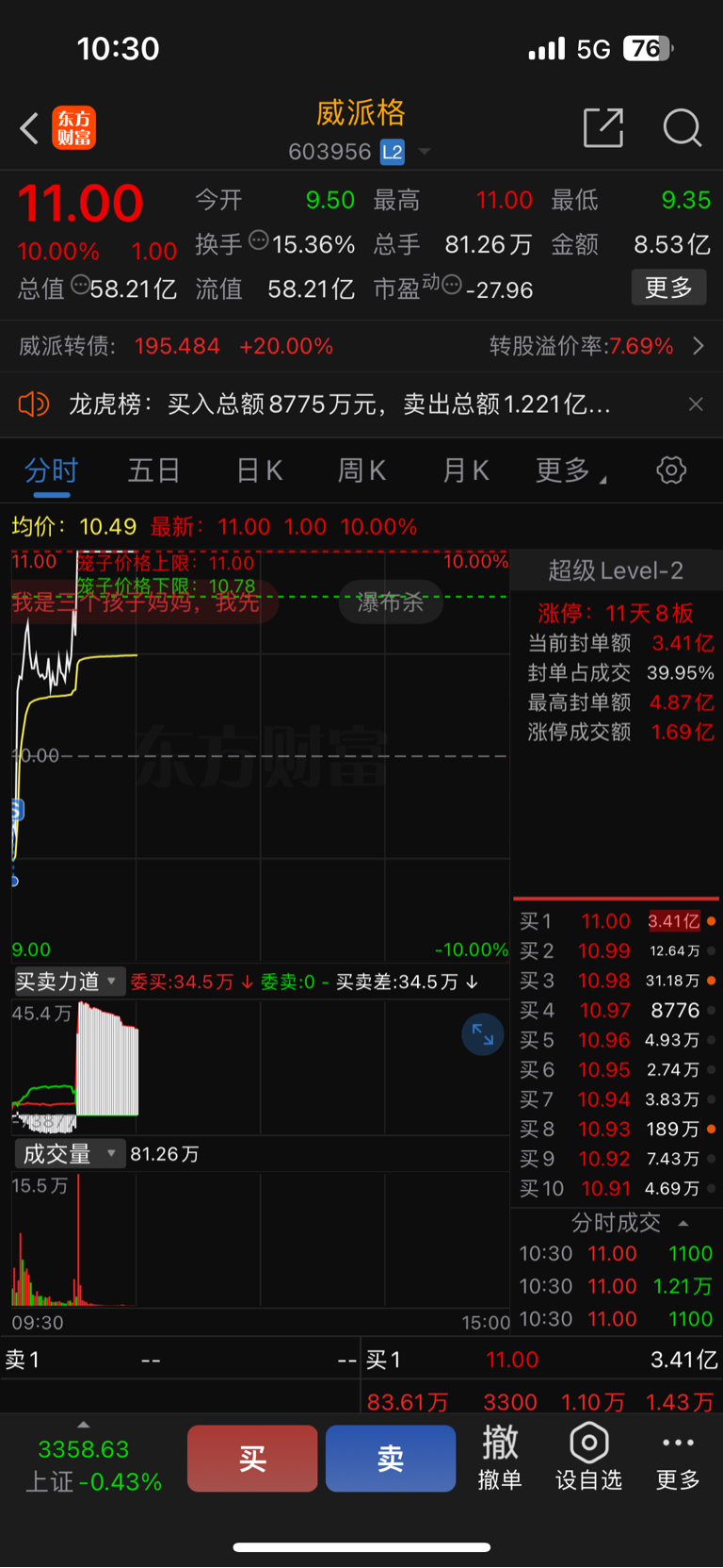 $威派格(SH603956)$ 今天被自己的炒作透了,最低点卖的派派,还好接了杭钢的位置够低,不然道心全毁