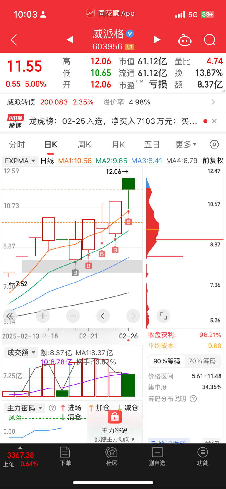 $威派格(SH603956)$ 大牛股 一路加仓就是干