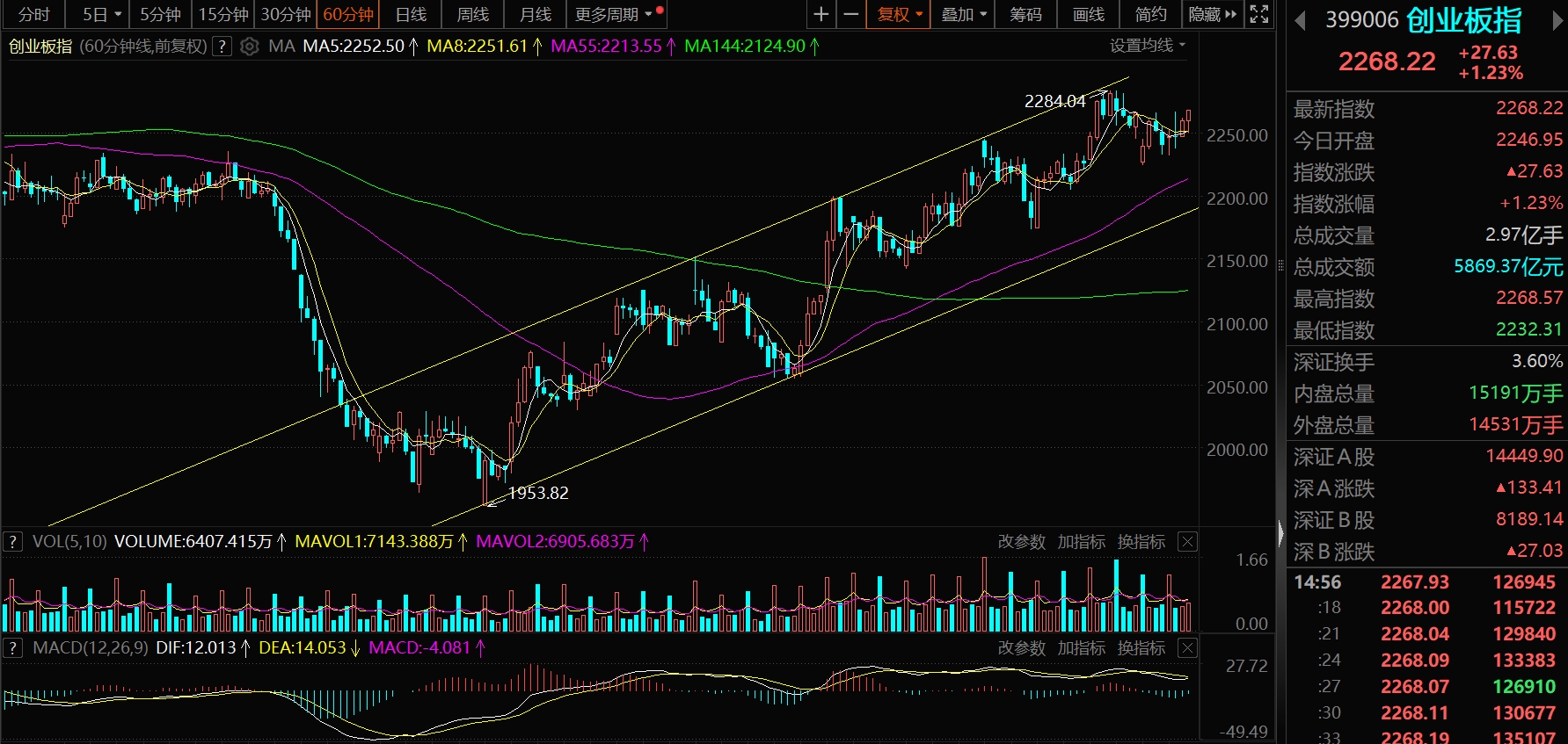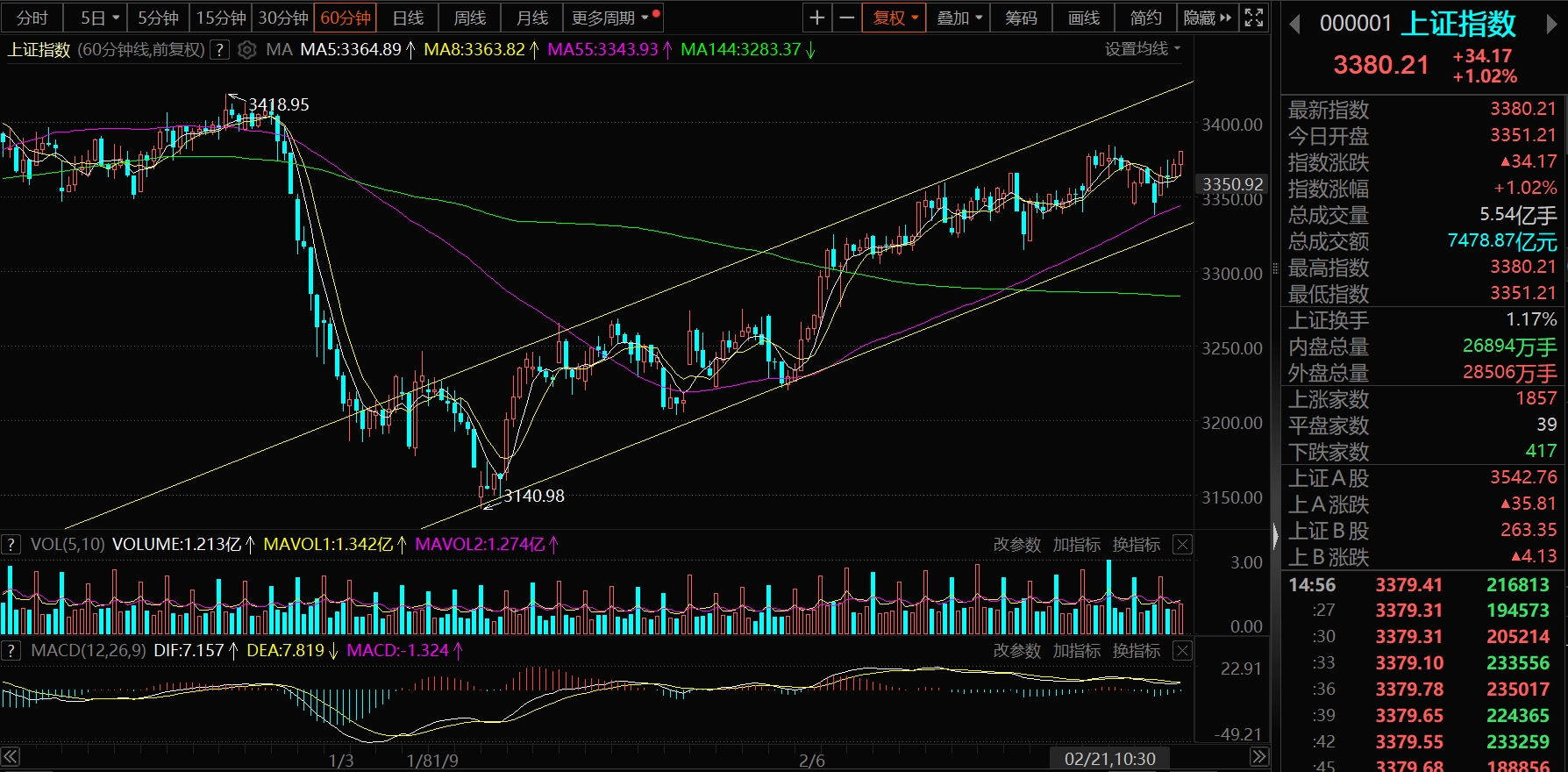 今日A股三大指数集体高开走高,截止收盘,沪指涨1.02%,收报3380.21点;深证成指涨0.93%,收报10955.65点;创业板指涨1.23%,收报2268.22点。科创板表现强势。恒生指数和恒生科技指数继续新高,A股被动跟随。