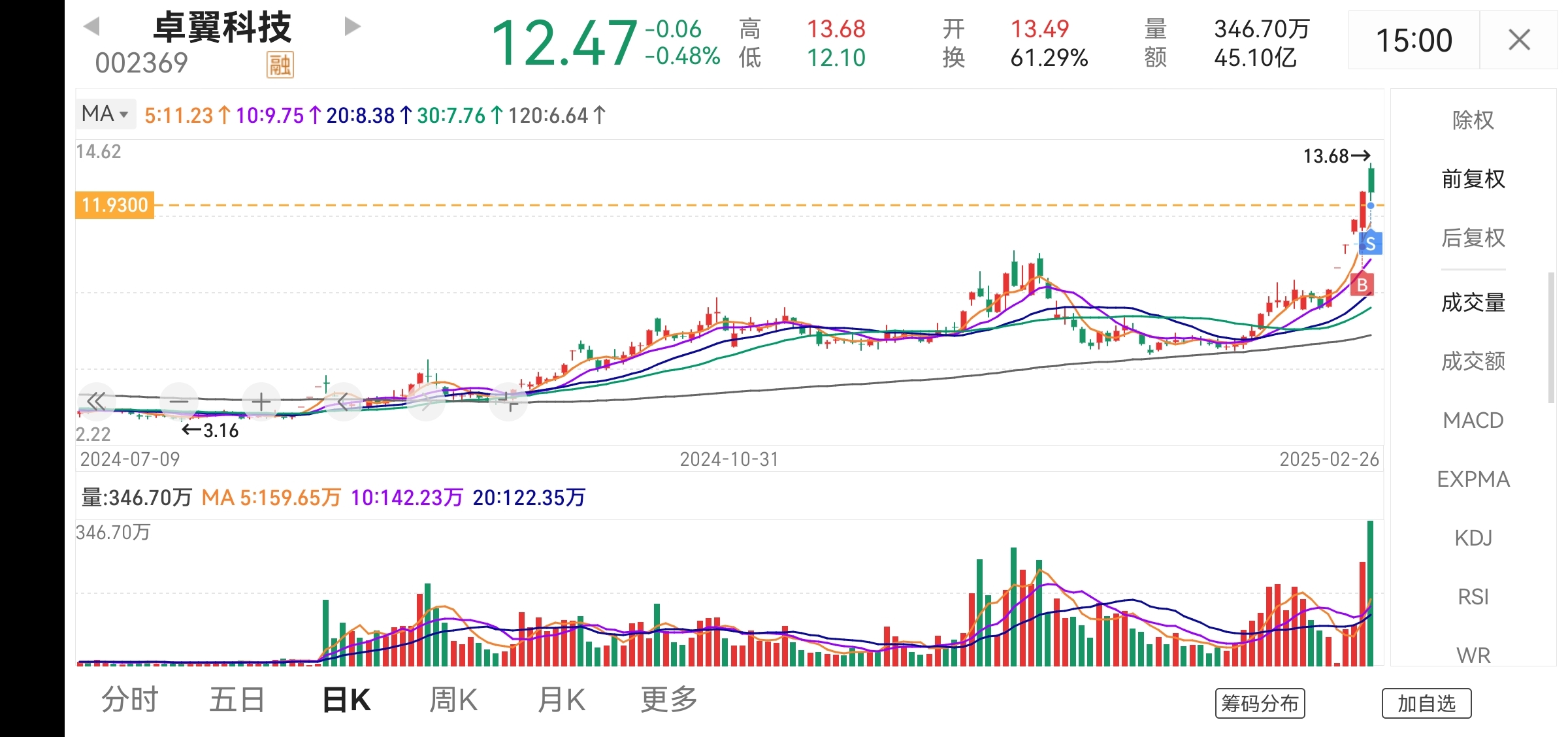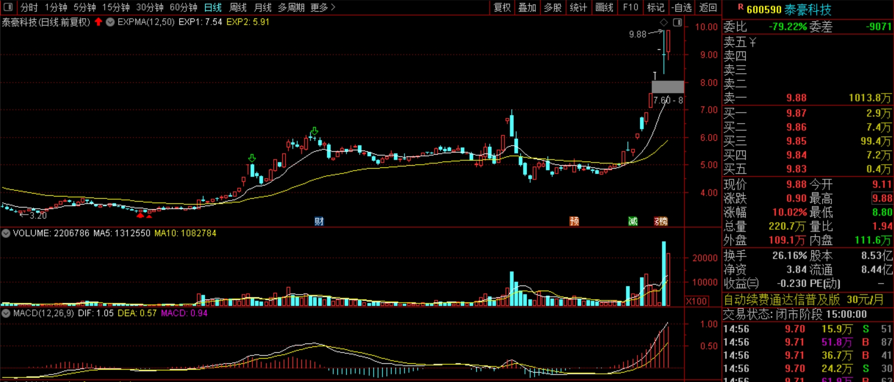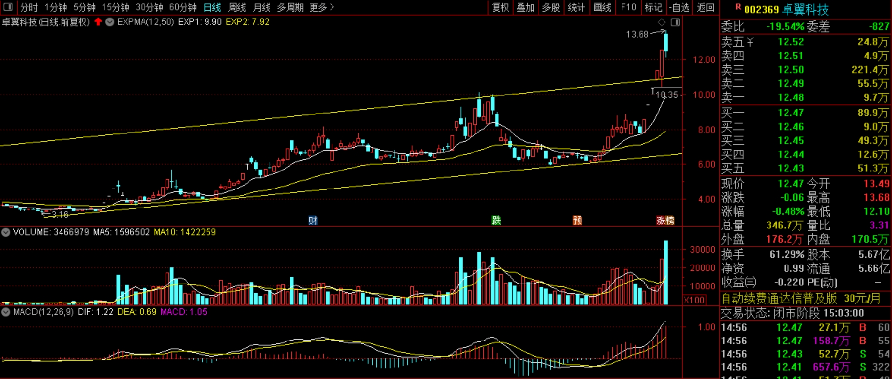 卓翼科技:今天该股放的量能太大了,且迟迟不能晋级6板,逢高落袋为安了,收获一日游利润!