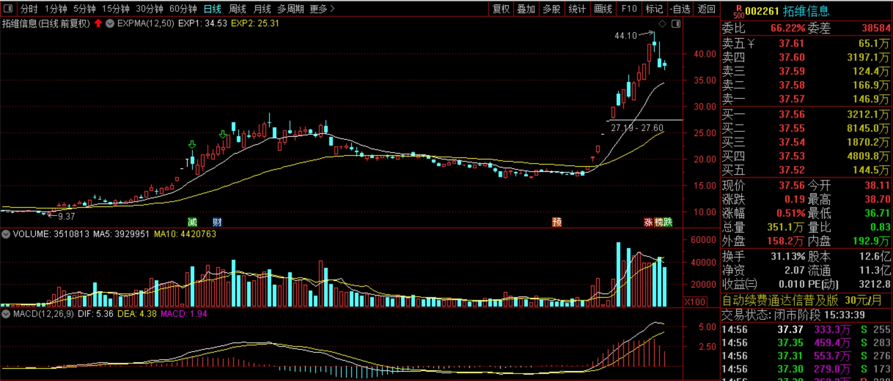 拓维信息:DS容量核心,今天继续调整走势,调整结束后还有望继续新高!