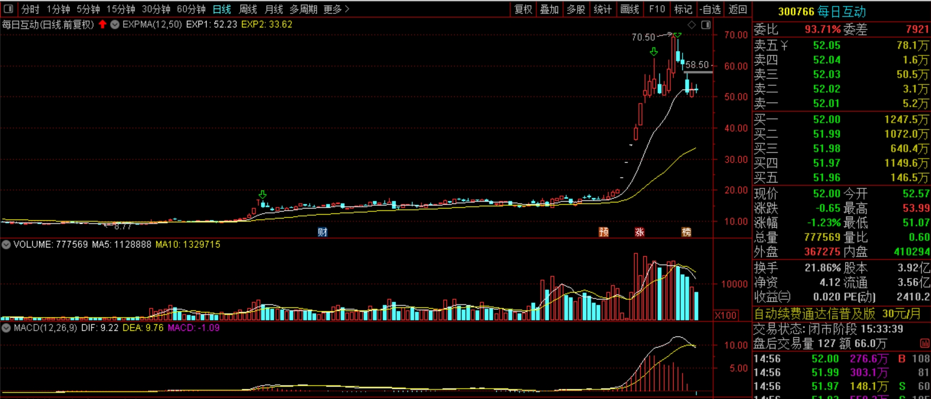 $每日互动(SZ300766)$ 对该股持仓不变,做T格局,等待二次监控结束。作为正宗DeepSeek个股,该股行情不太可能就此结束,至少还有个冲击前高的过程。
