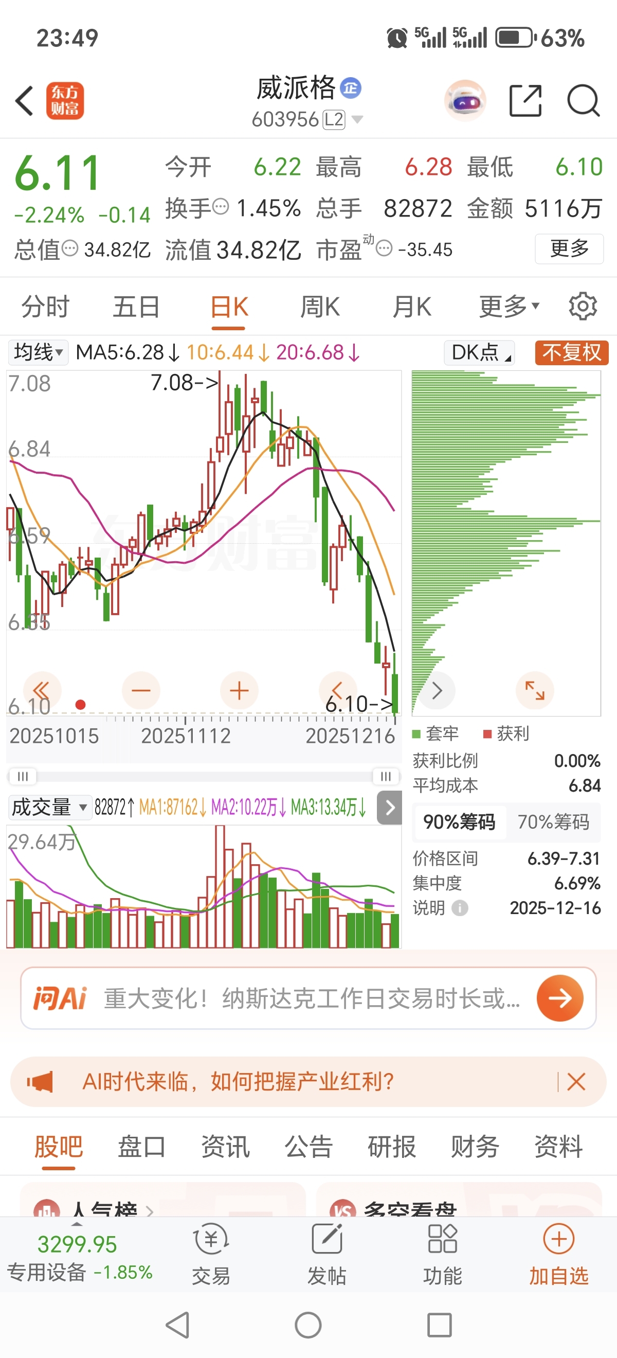 $威派格(SH603956)$ 全是套牢的,不好搞啊。