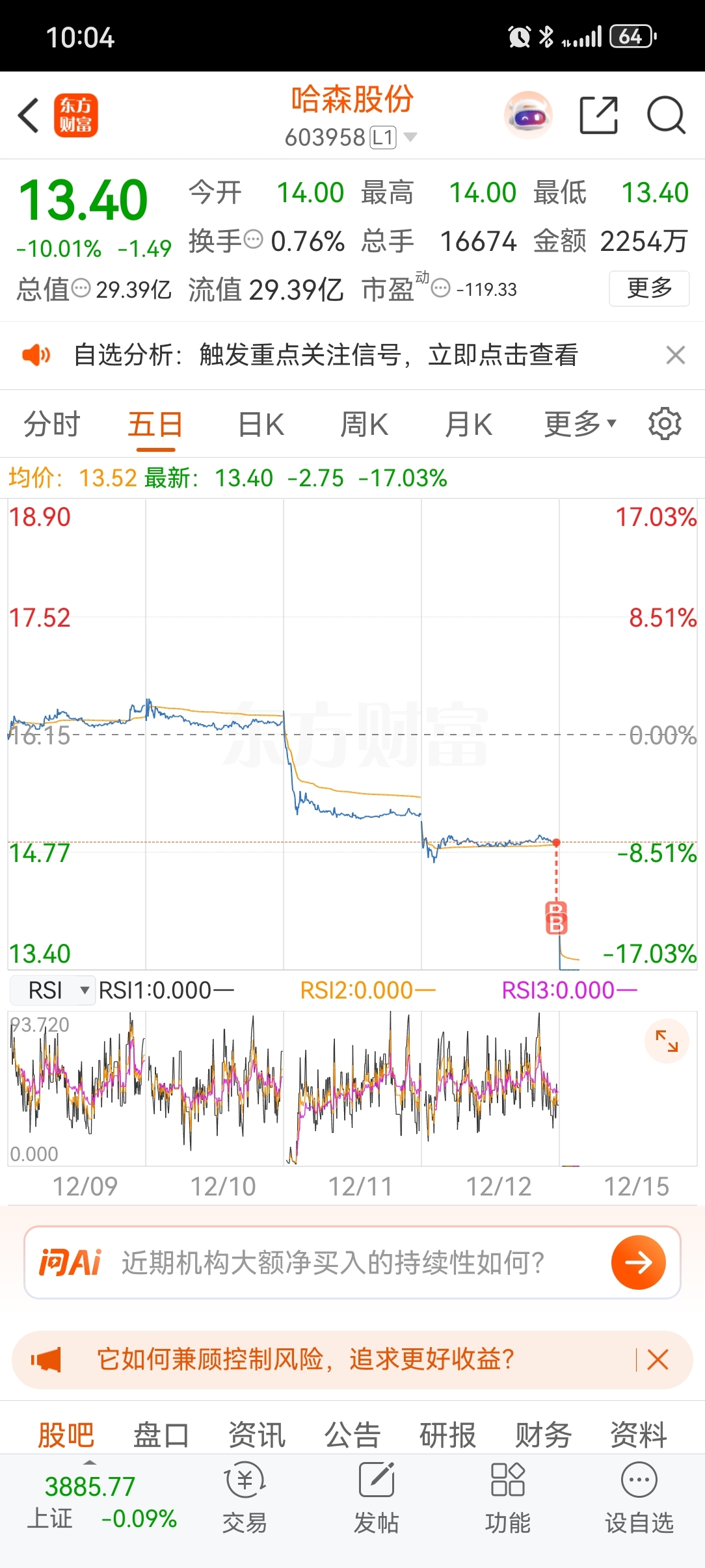 $哈森股份(SH603958)$ 周五进来,你今天就赏我一大碗面