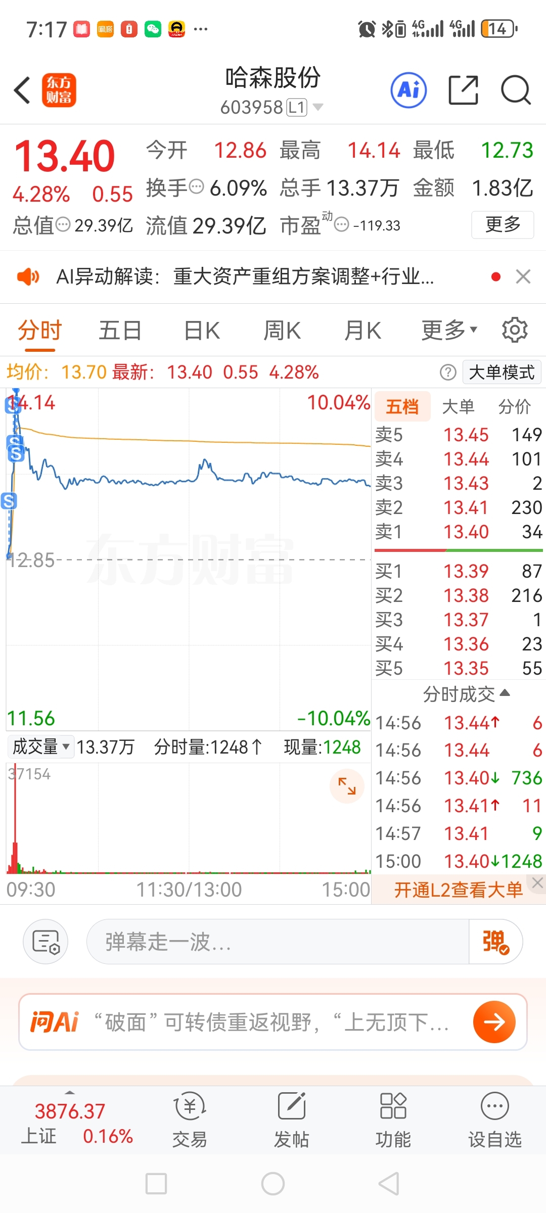 $哈森股份(SH603958)$ 还好昨天走了,卖掉了庄园哭瞎了