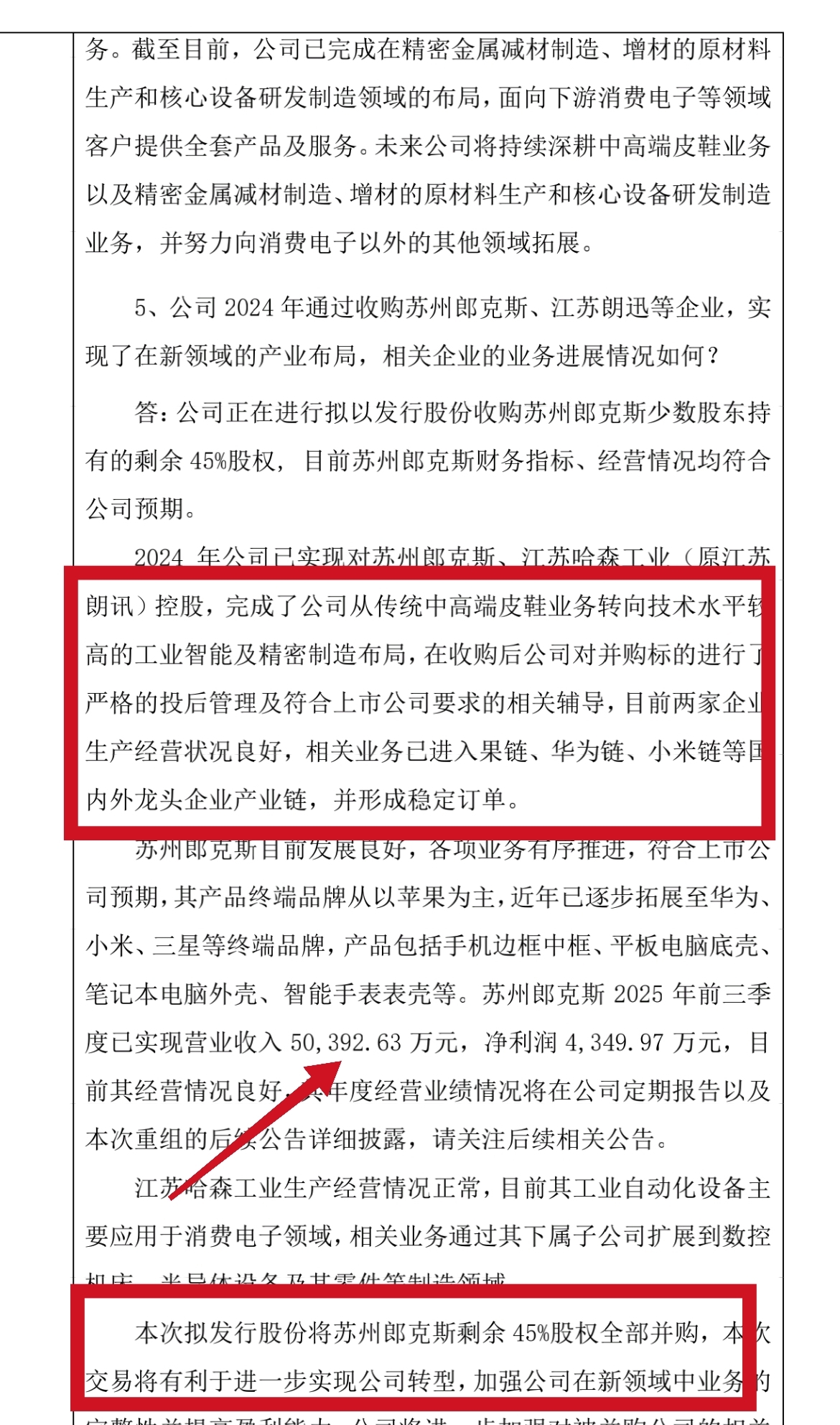 简单说就是控股子公司江苏郎克斯供货华为苹果三星消费电子且订单稳定,业绩是不计入哈