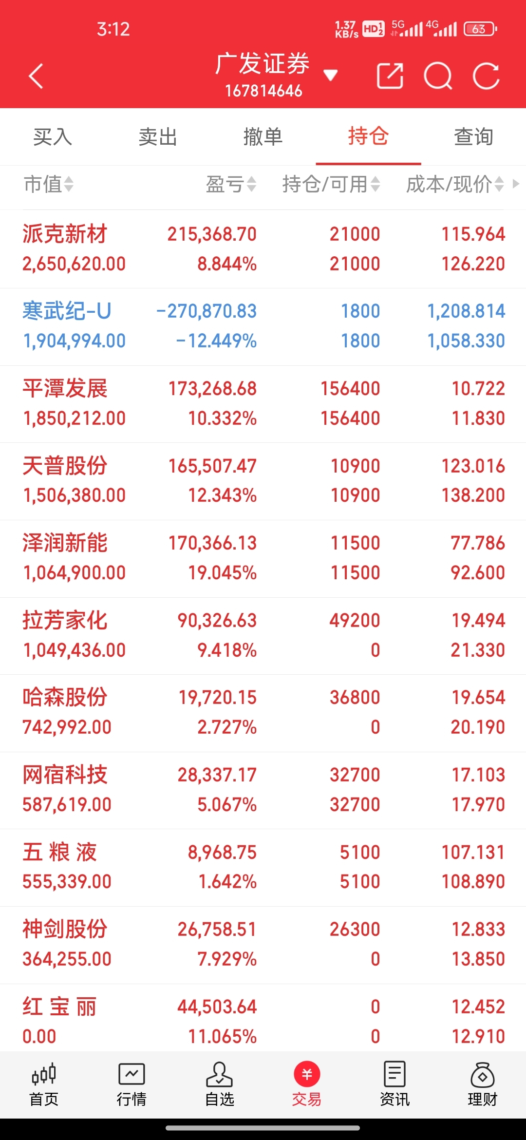 今日收盘持仓