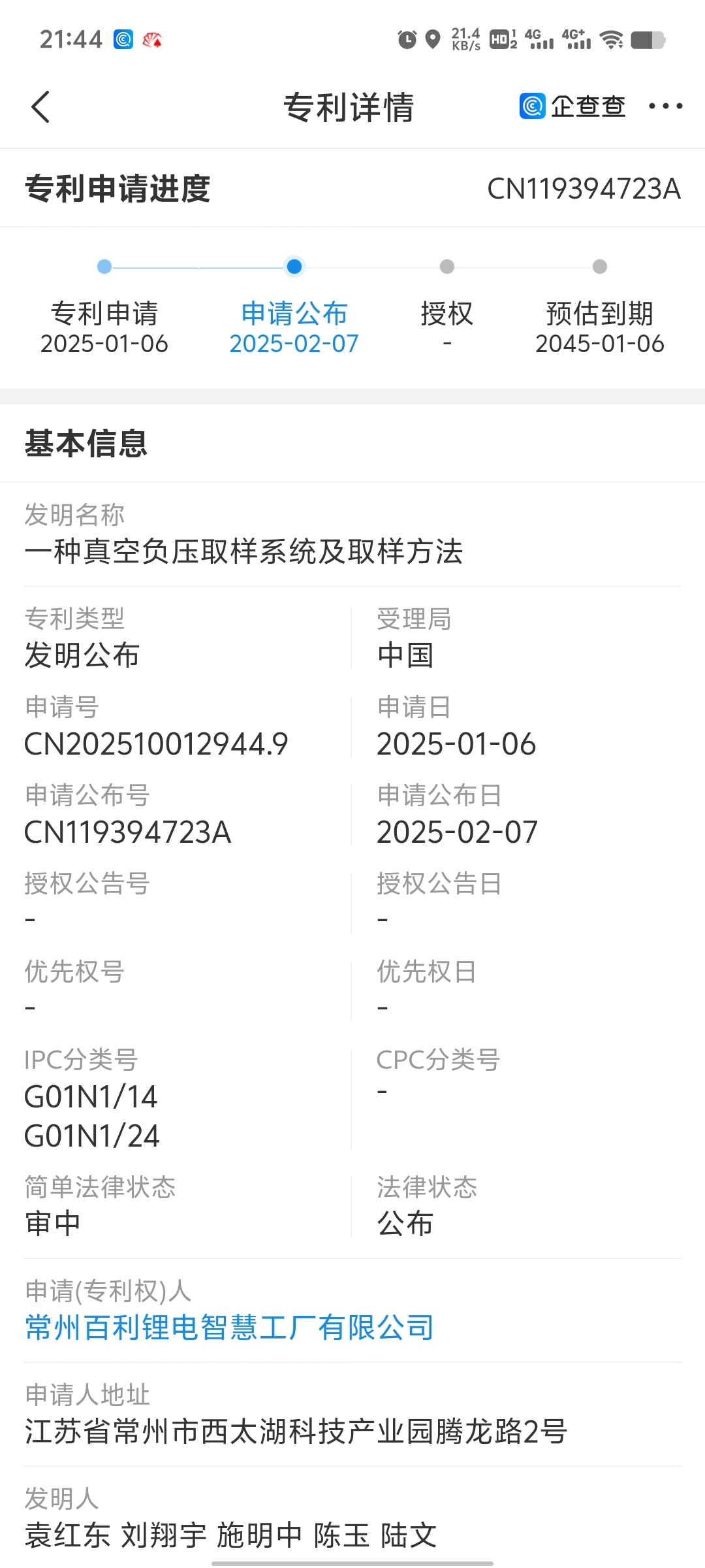 今日收盘后百利科技公开发明专利:一种真空负压取样系统及取样方法。评指数:聊观点: