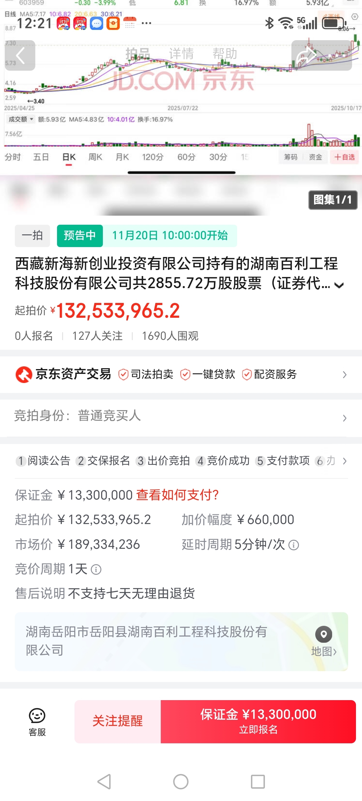 $百利科技(SH603959)$ 11月20号拍卖上架
