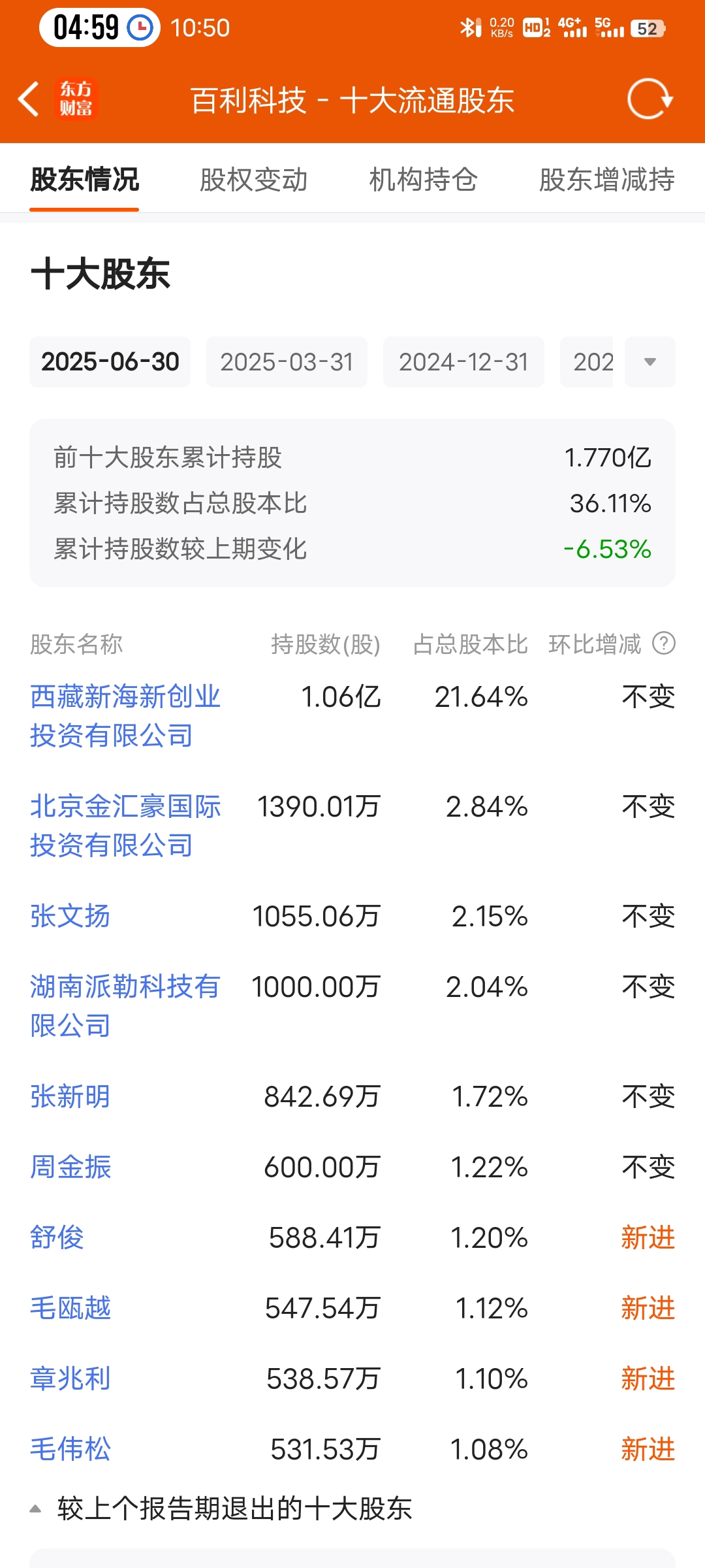 $百利科技(SH603959)$ 后面派勒是第一大股东了,份额是前十大股东的1/3到1/2。