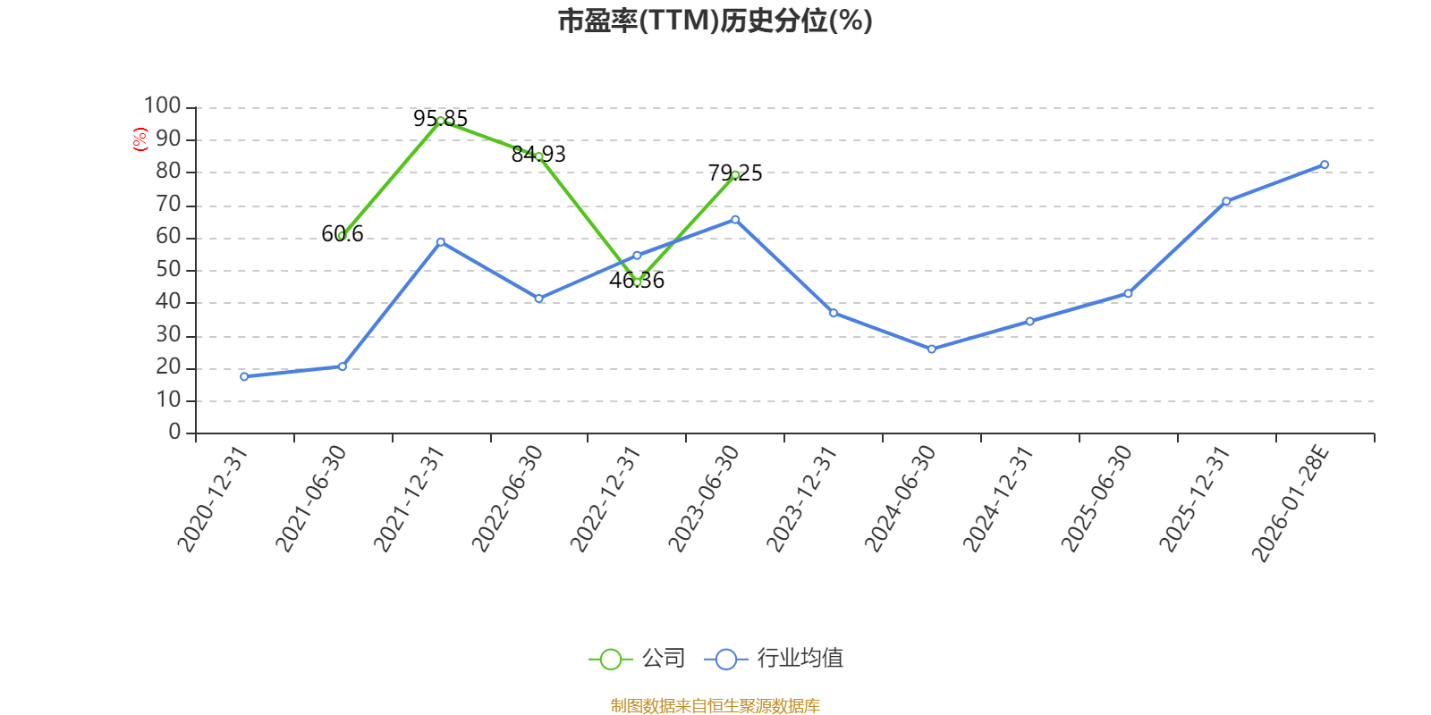 以本次披露业绩预告均值计算,公司近年市盈率(TTM)图如下所示: