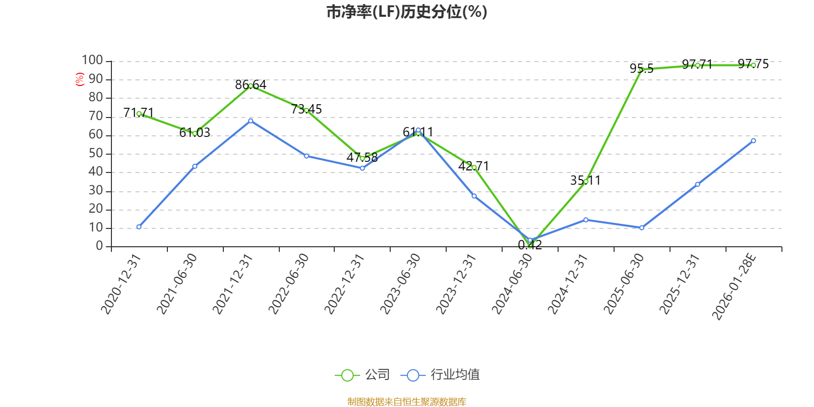 市盈率、市净率为负时,不显示当期分位数,会导致折线图中断。