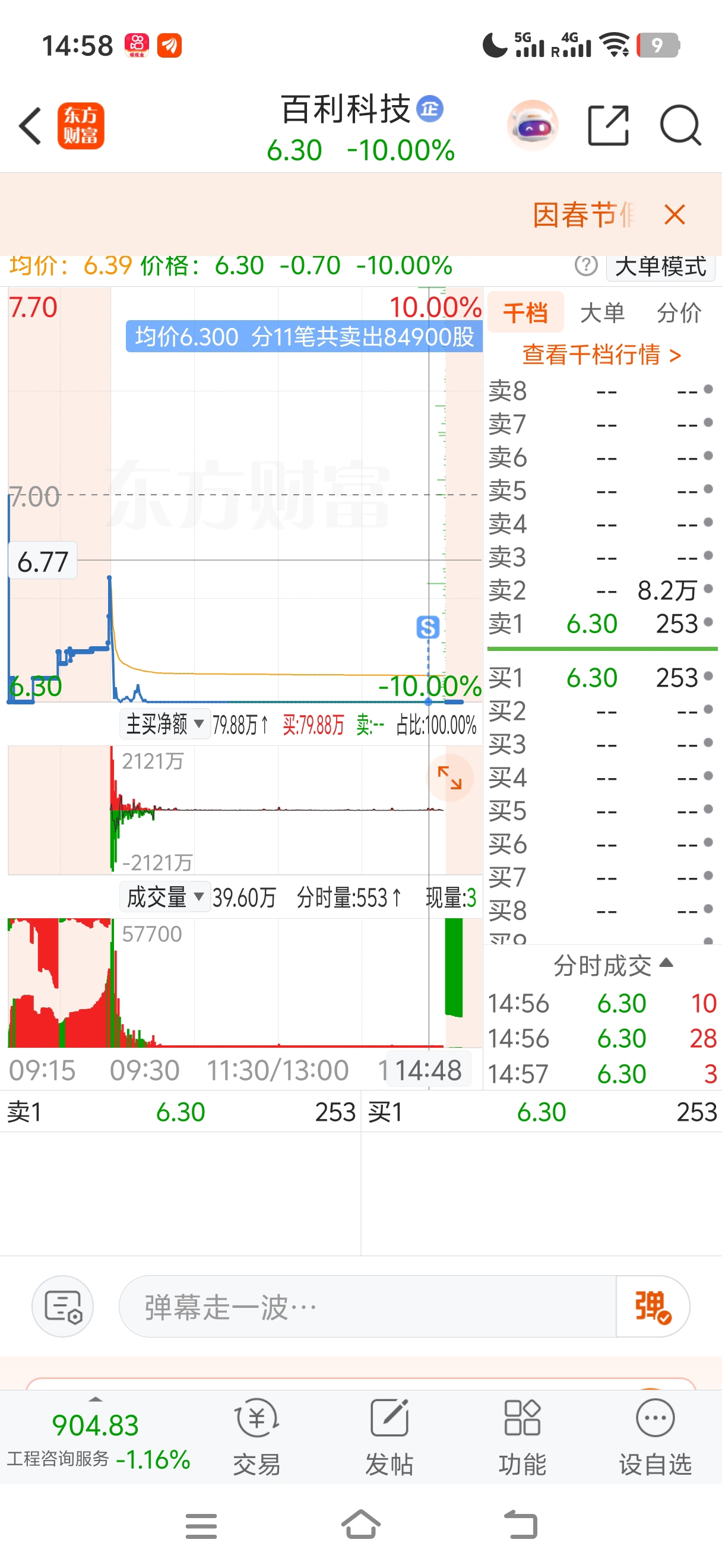 $百利科技(SH603959)$ 拿了一天亏了6万,玛德给我吓,总算排出来了。