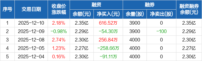 克来机电:融资净买入616.52万元,融资余额2.35亿元(12-10)