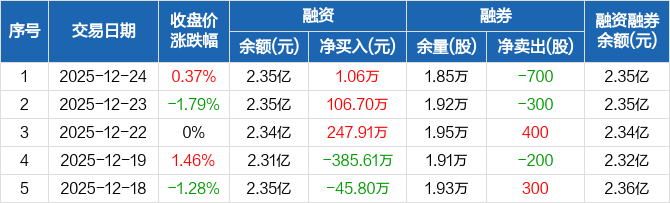 克来机电:连续3日融资净买入累计355.68万元(12-24)
