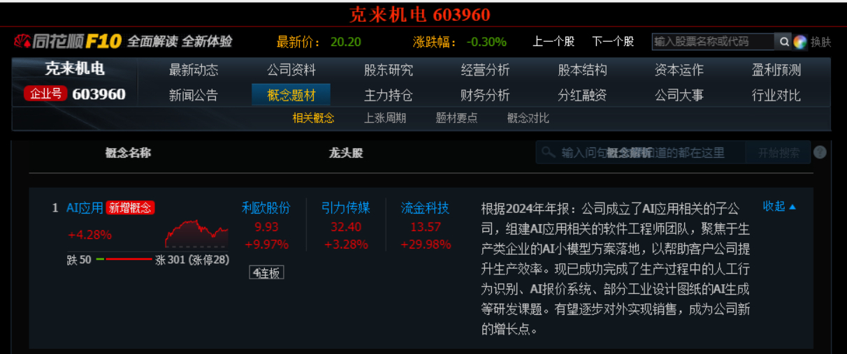 $克来机电(SH603960)$ 你这AI应用概念新增过去也是丢人现眼的啊