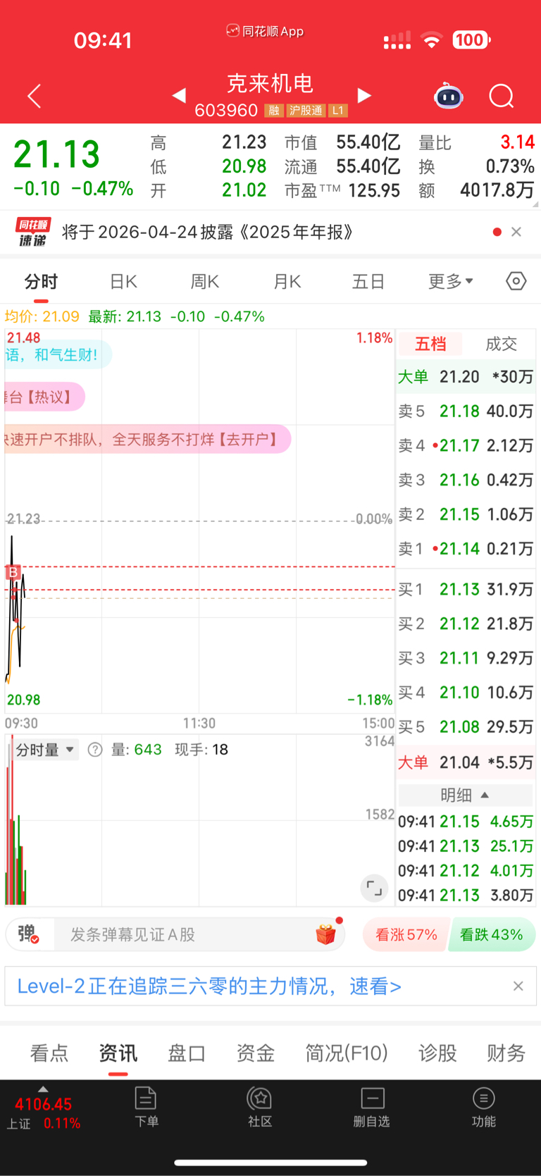 $克来机电(SH603960)$ 又进了一成仓位,三成仓位了,支持