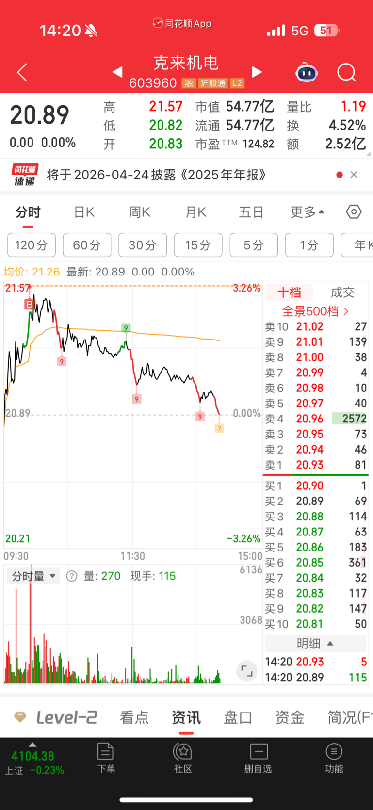 $克来机电(SH603960)$ 兄弟们对不起,怪我,主力监控到我来了,我明天就走,让你们吃肉