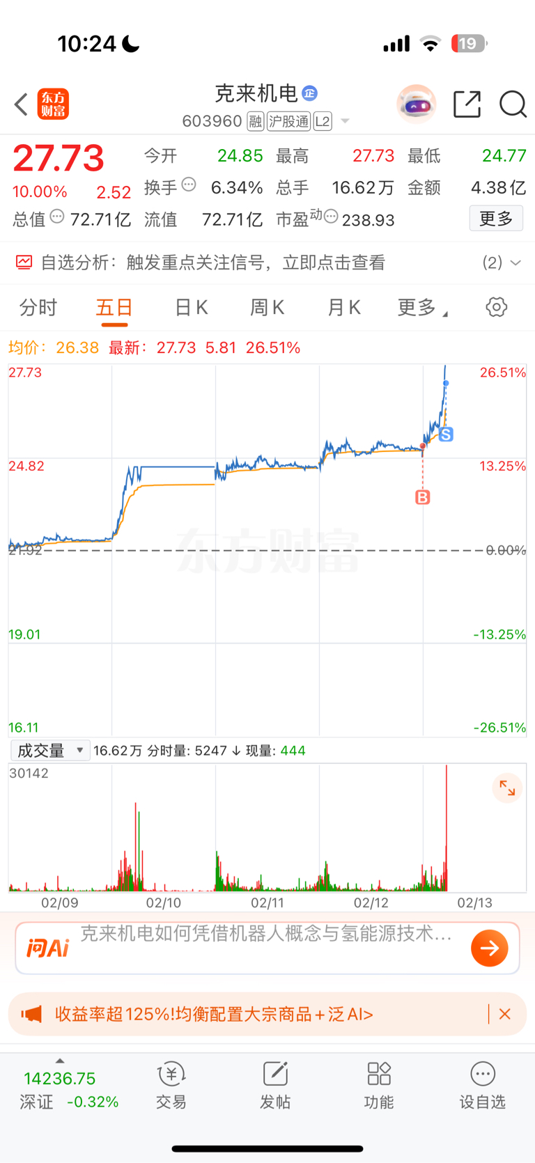 $克来机电(SH603960)$ 虽然卖飞,但是感谢你