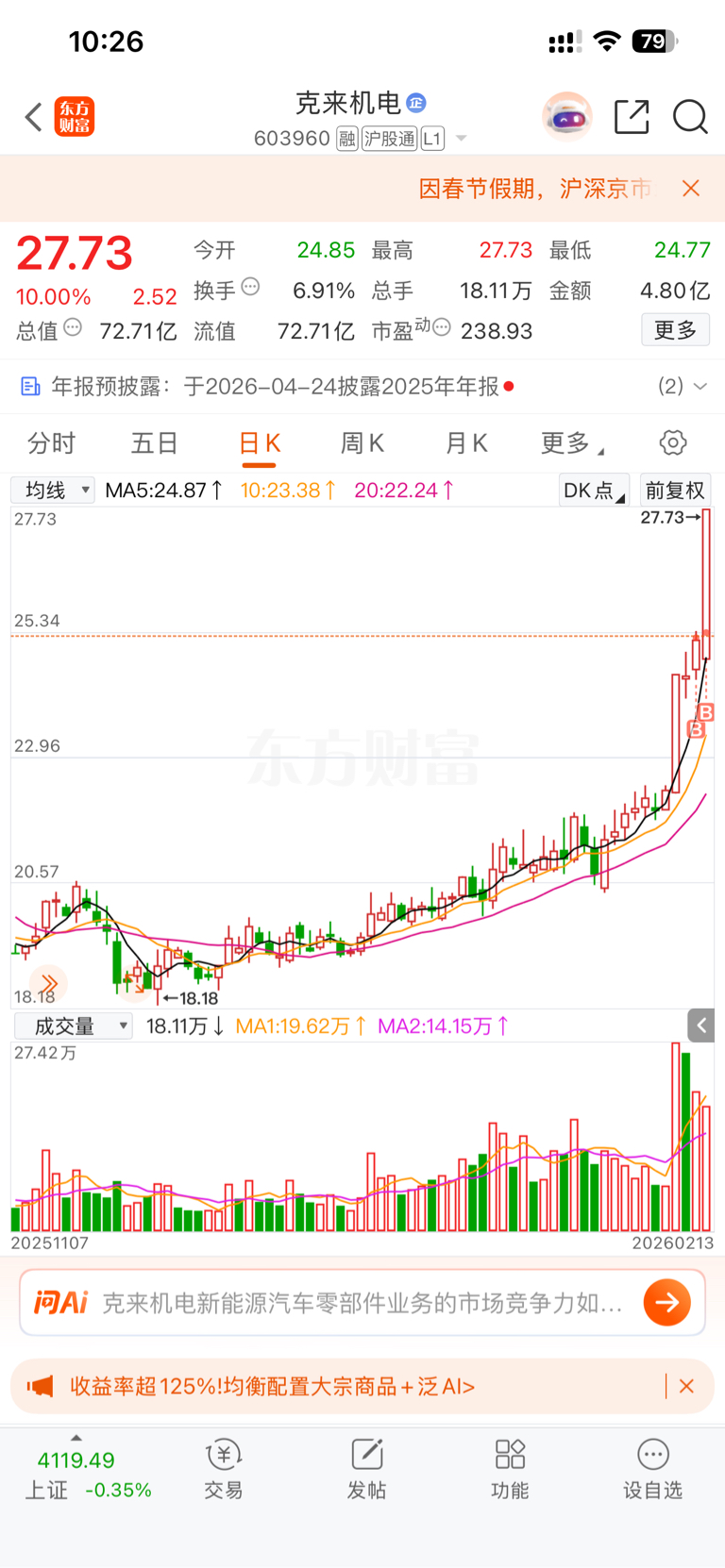 $克来机电(SH603960)$ 继续晒一下近期超短线操作!喷子磙蛋!!!嘴干净点!这个月节奏是真好啊,运气也好!我都是全仓就1~3个票,每天必须全仓拉满