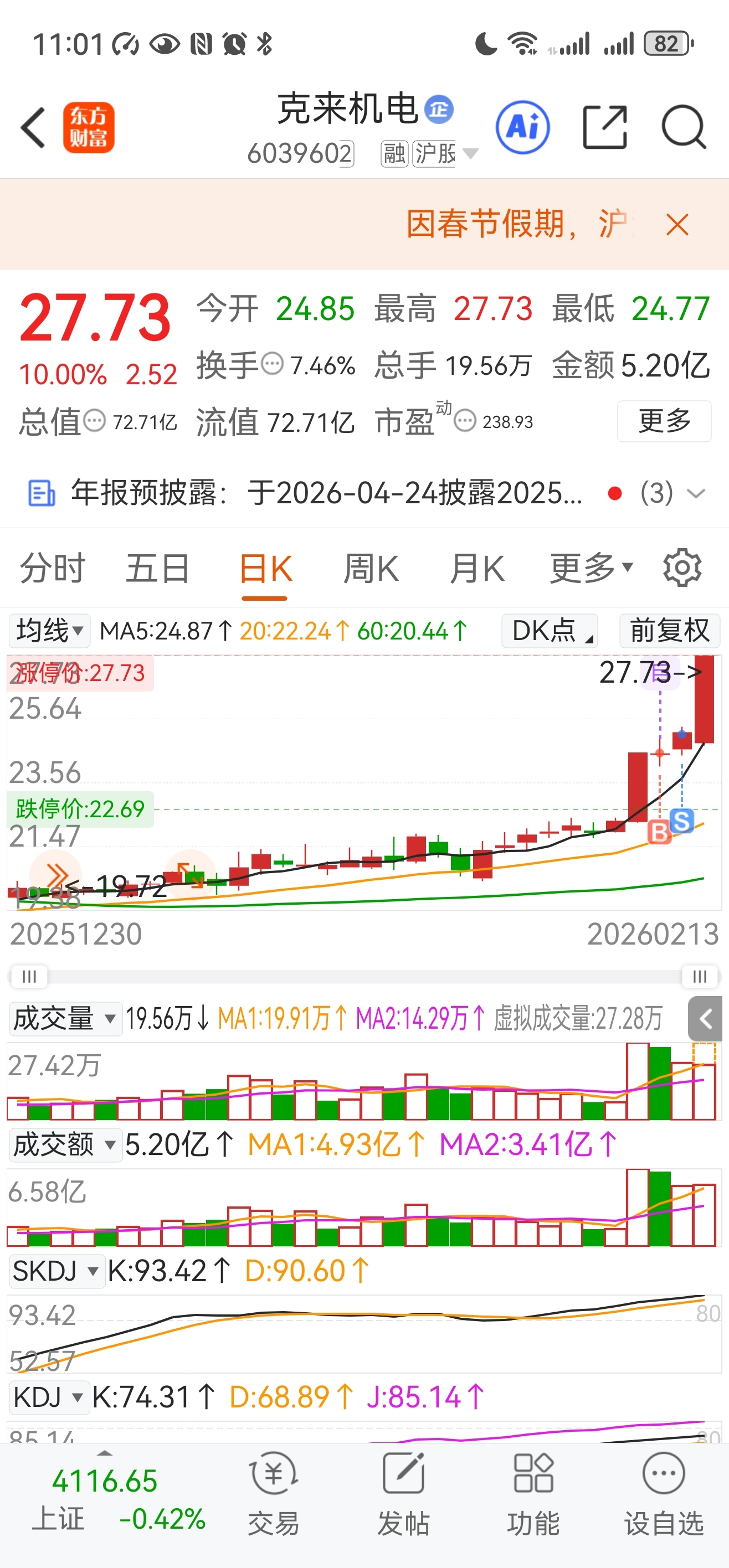 $克来机电(SH603960)$ 这是什么妖?