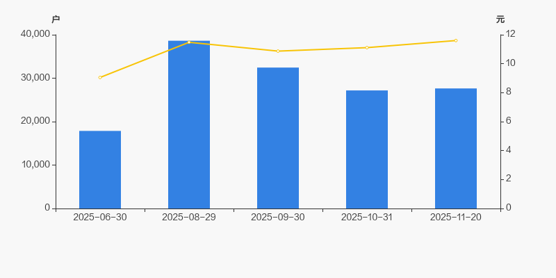 2025年6月30日至今,公司股东户数显著大幅增长,区间涨幅达54.74%。2025年6月30日至2025年11月20日区间股价上涨28.19%。