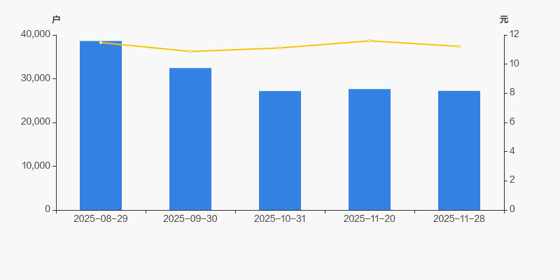 2025年8月29日至今,公司股东户数显著下降,区间跌幅为29.51%。2025年8月29日至2025年11月28日区间股价下降2.26%。