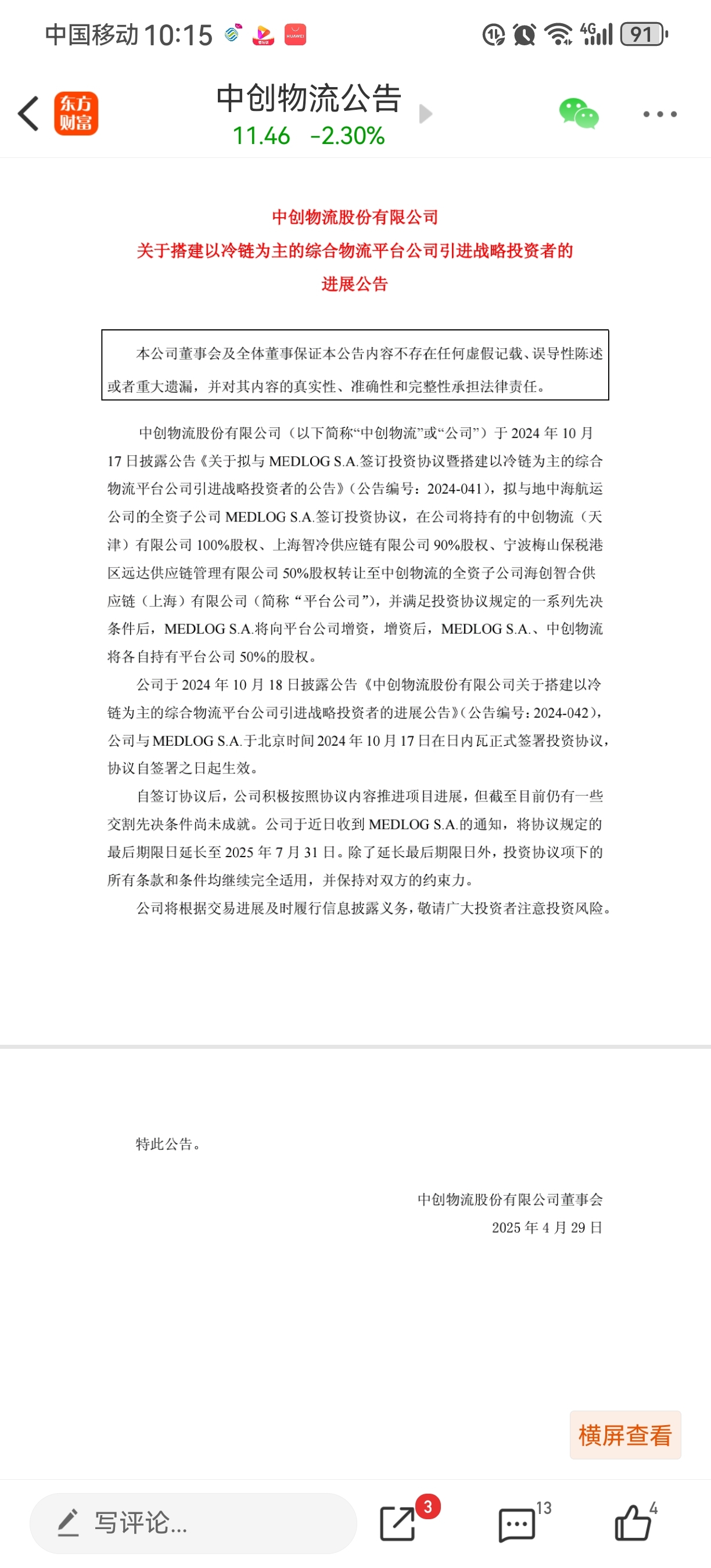 $中创物流(SH603967)$