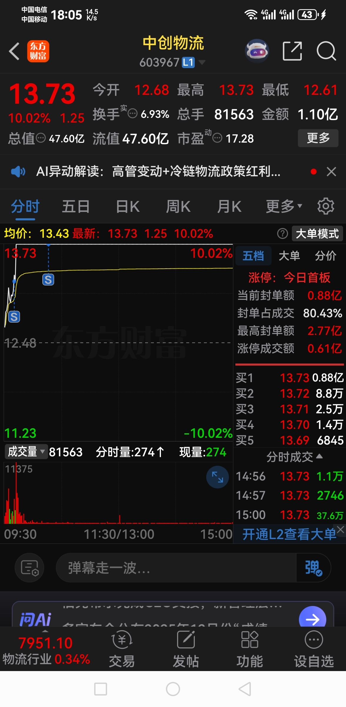 最后一交易日,持仓中唯一涨停。