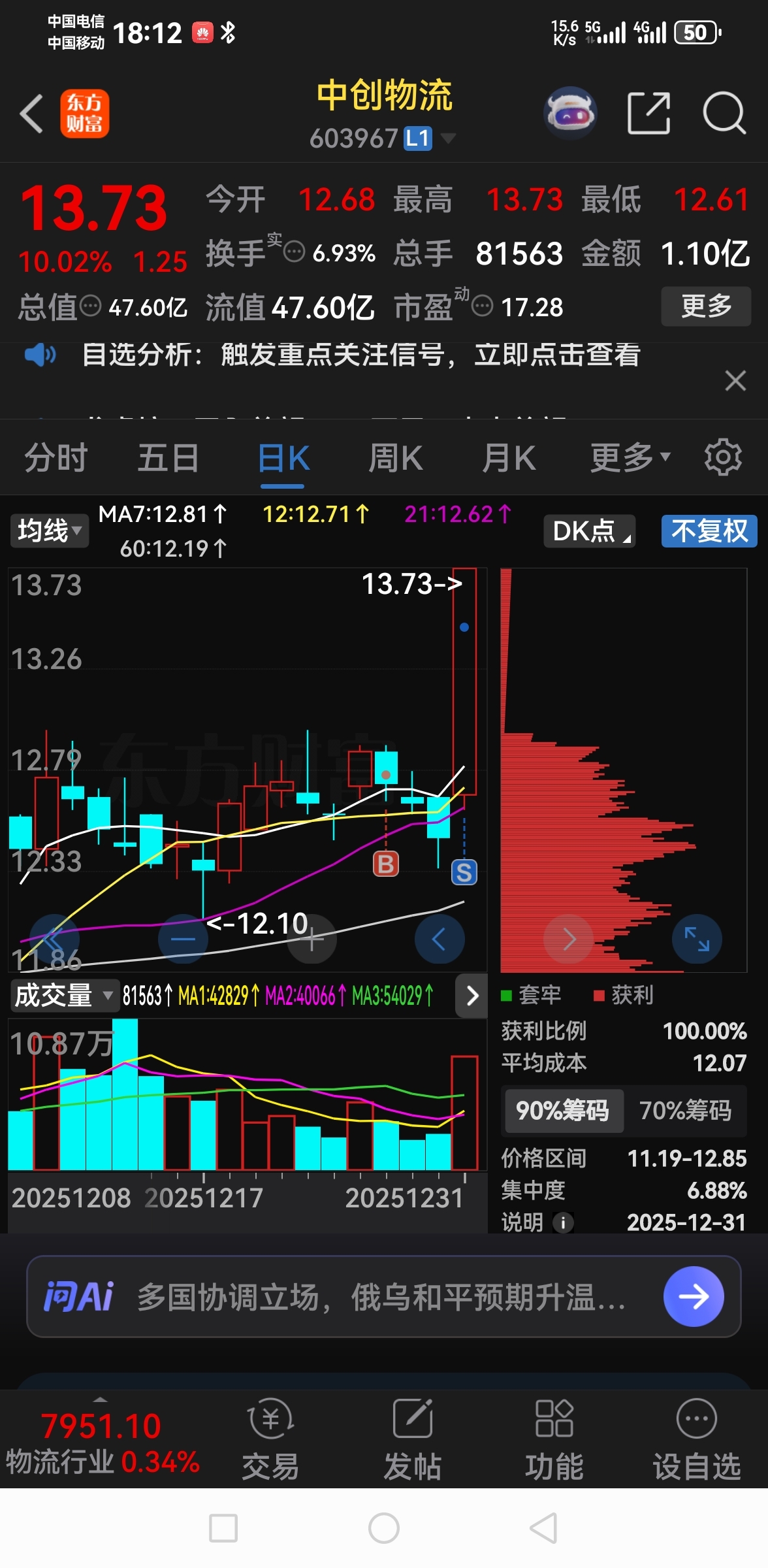 2025年收官最后一交易日,持仓中唯一涨停。虽不多,也算市场派发的小小红包操作上