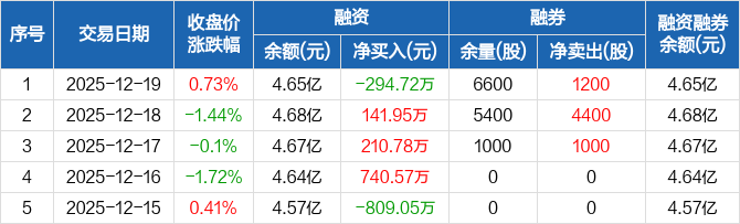 银龙股份:融资净偿还294.72万元,融资余额4.65亿元(12-19)