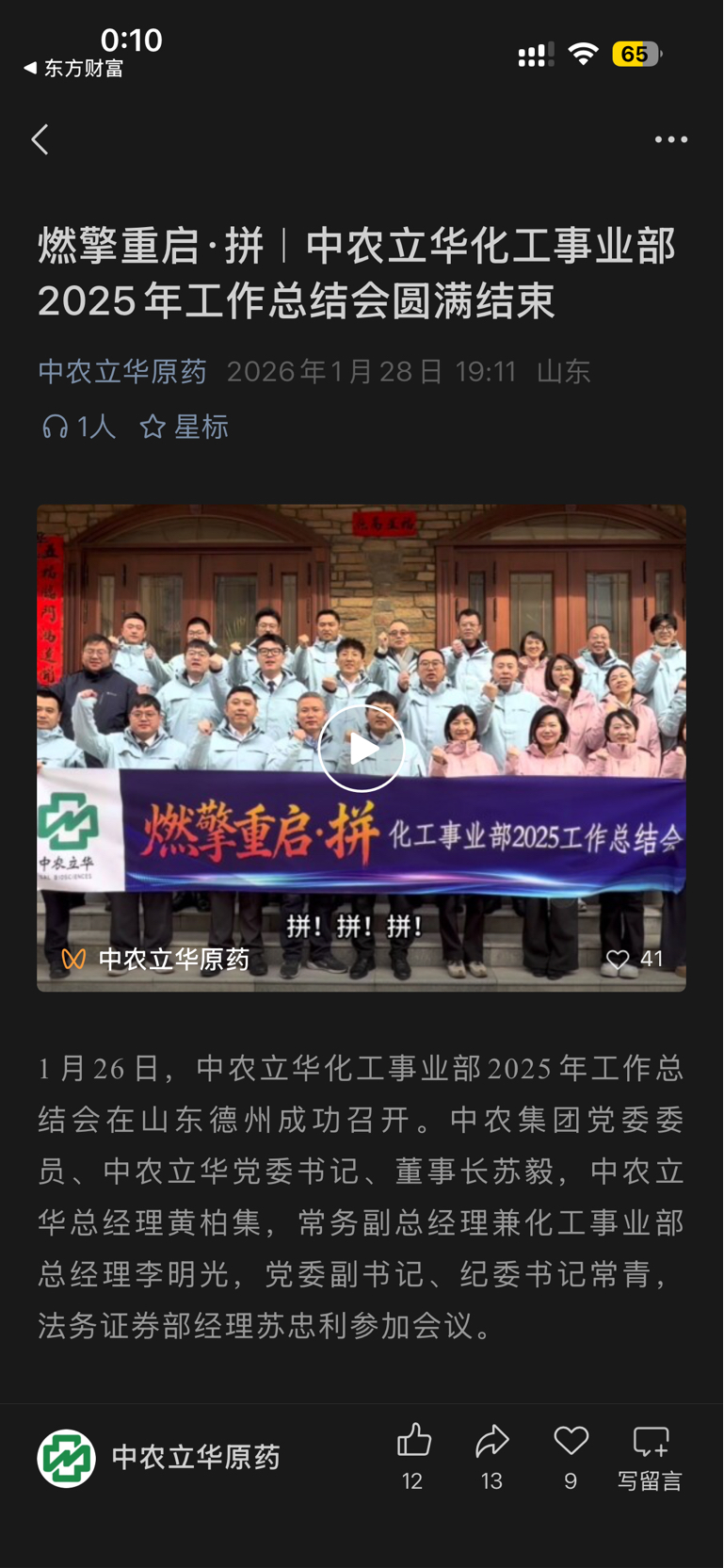 $中农立华(SH603970)$ 内容搞得跟村支部活动一样!多吧重心放到业务上!别整这些形而上的东西!没有价值没有意义,企业文化一旦散了,企业离黄也就不远了....苏总,好好干,把事情做到实处!