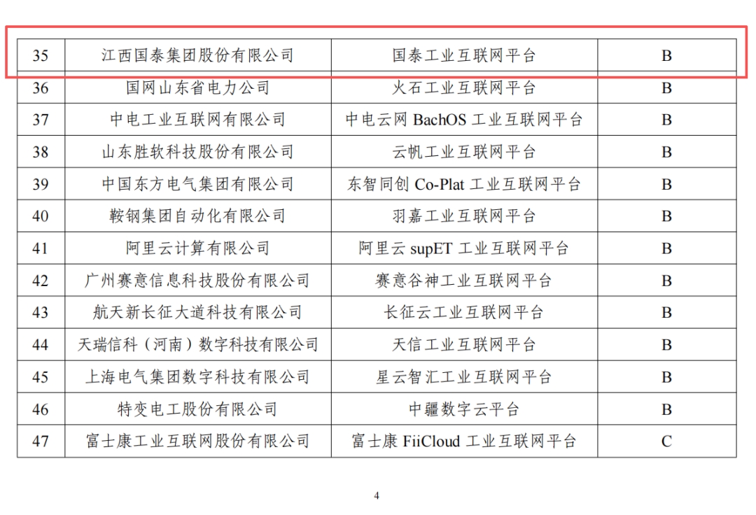 $国泰集团(SH603977)$ 工业和信息化部公布了2025年度国家级跨行业跨领域(简称“双跨”)工业互联网平台动态评价结果。国泰工业互联网平台凭借持续技术创新与行业赋能实效,排名从去年41位次提升至第35位,成为我省唯一跻身该权威榜单的平台,展现了江西在工业互联网平台建设方面的硬实力。
