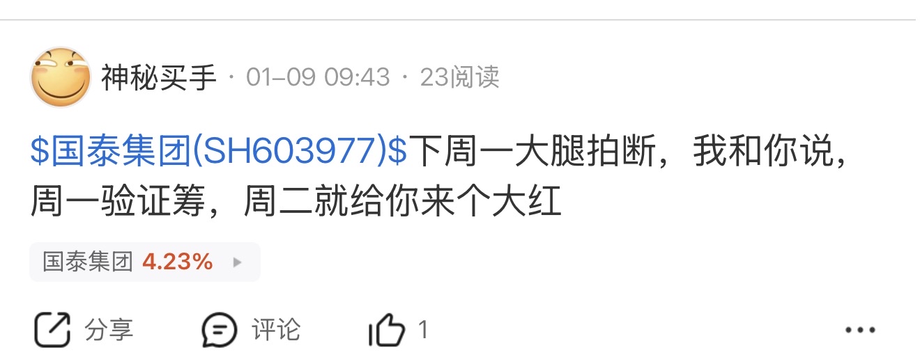 $国泰集团(SH603977)$ 没问题
