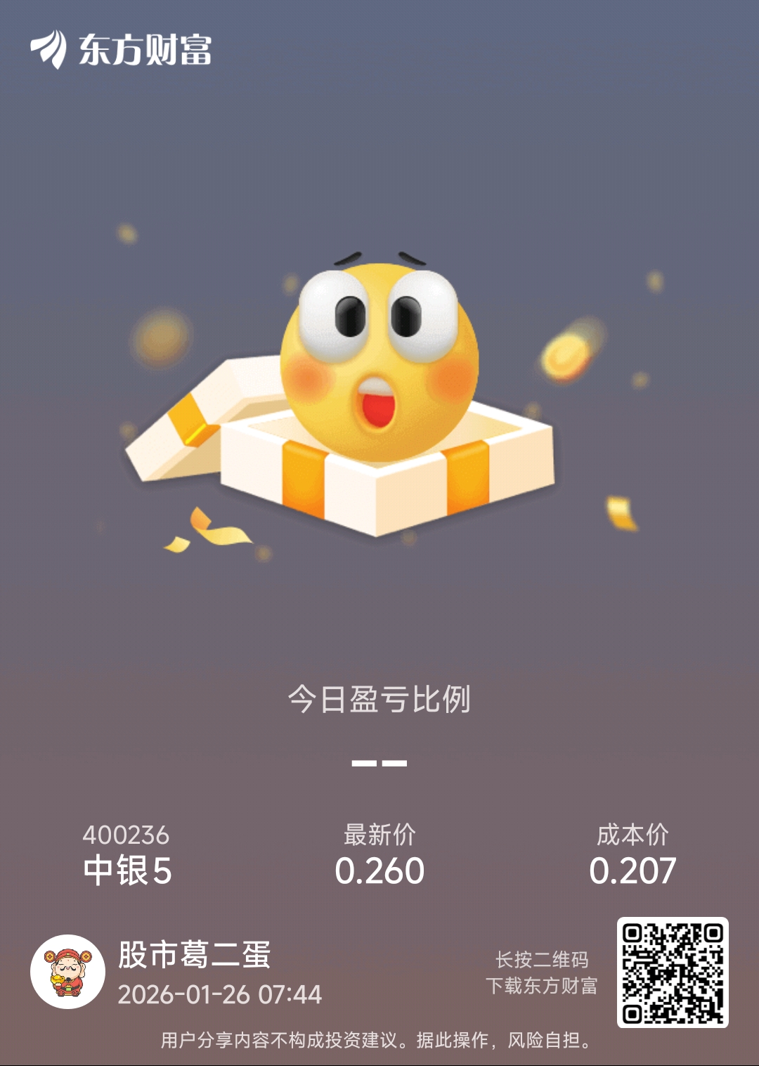 温馨提示: 1.根据《证券法》规定,禁止编造、传播虚假信息或者误导性信息,扰乱证券市场;2.用户在本社区发表的所有资料、言论等仅代表个人观点,与本网站立场无关,不对您构成任何投资建议。用户应基于自己的独立判断,自行决定证券投资并承担相应风险。《东方财富社区管理规定》