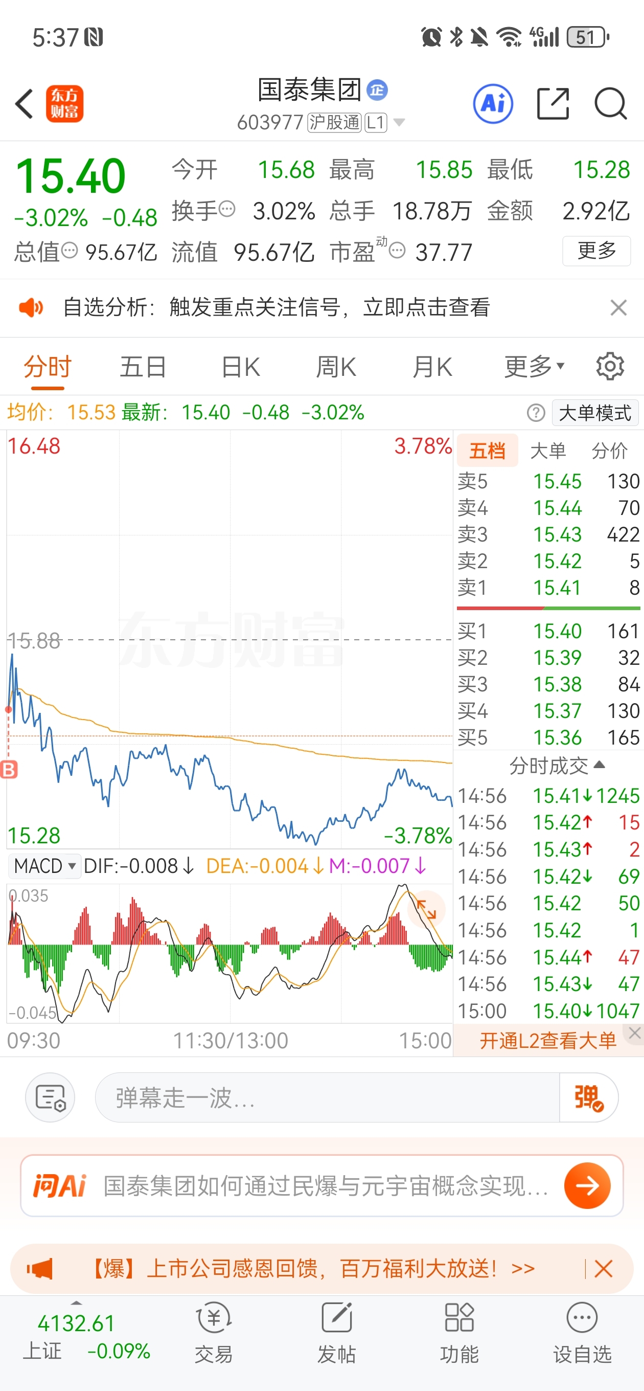 $国泰集团(SH603977)$ 业绩预增,看来早盘买套还算好。就看主力认不认可航天发动机题材!!!