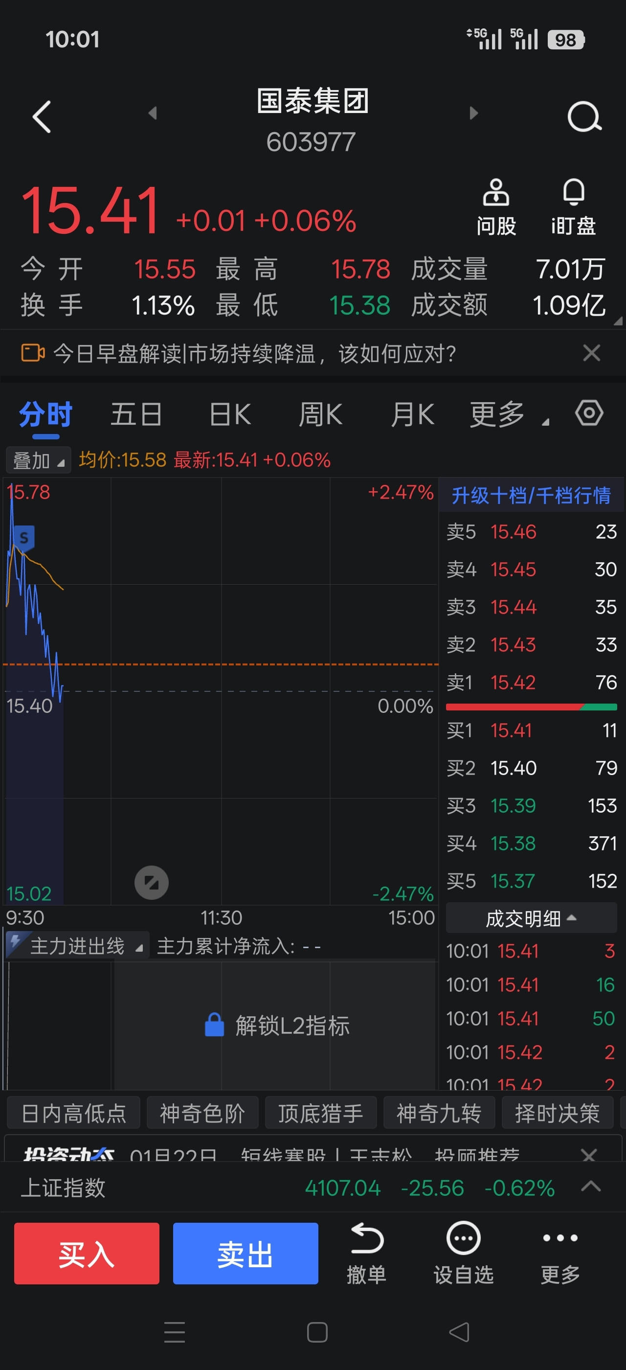 $国泰集团(SH603977)$ 兄弟们我先避一下大盘下杀 下午找机会接回来