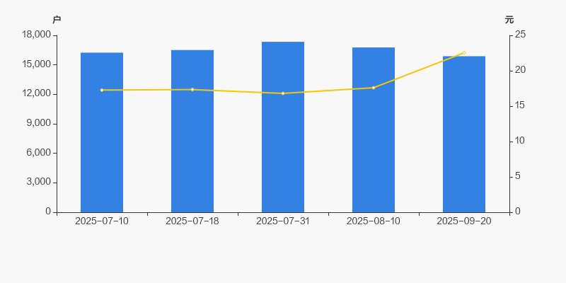 2025年7月10日至今,公司股东户数有所下降,区间跌幅为2.23%。2025年7月10日至2025年9月20日区间股价上涨30.52%。