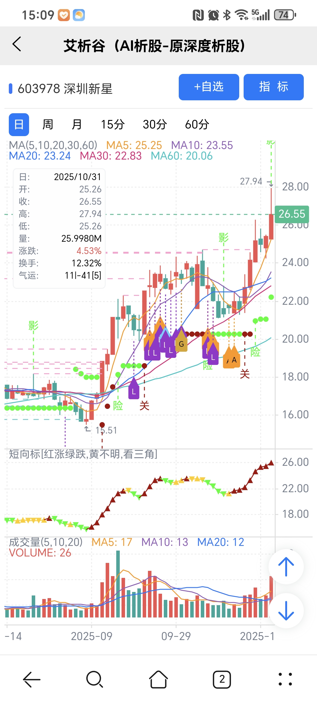 图中A、B、G、L 关注标记是对应AI选股模型当天下午2点多给出。