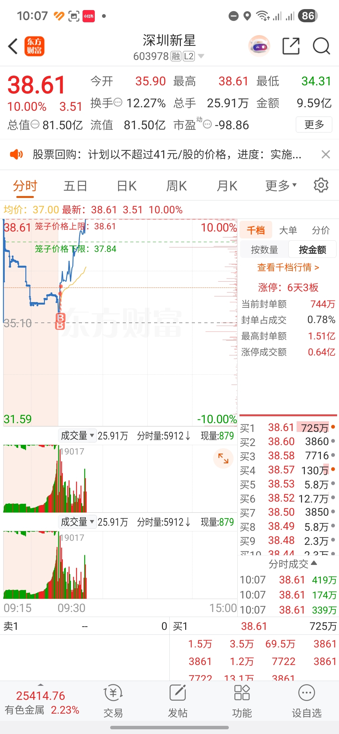 $深圳新星(SH603978)$ 今天都是补涨,天际200%缠打一会,补涨的多多和新星,