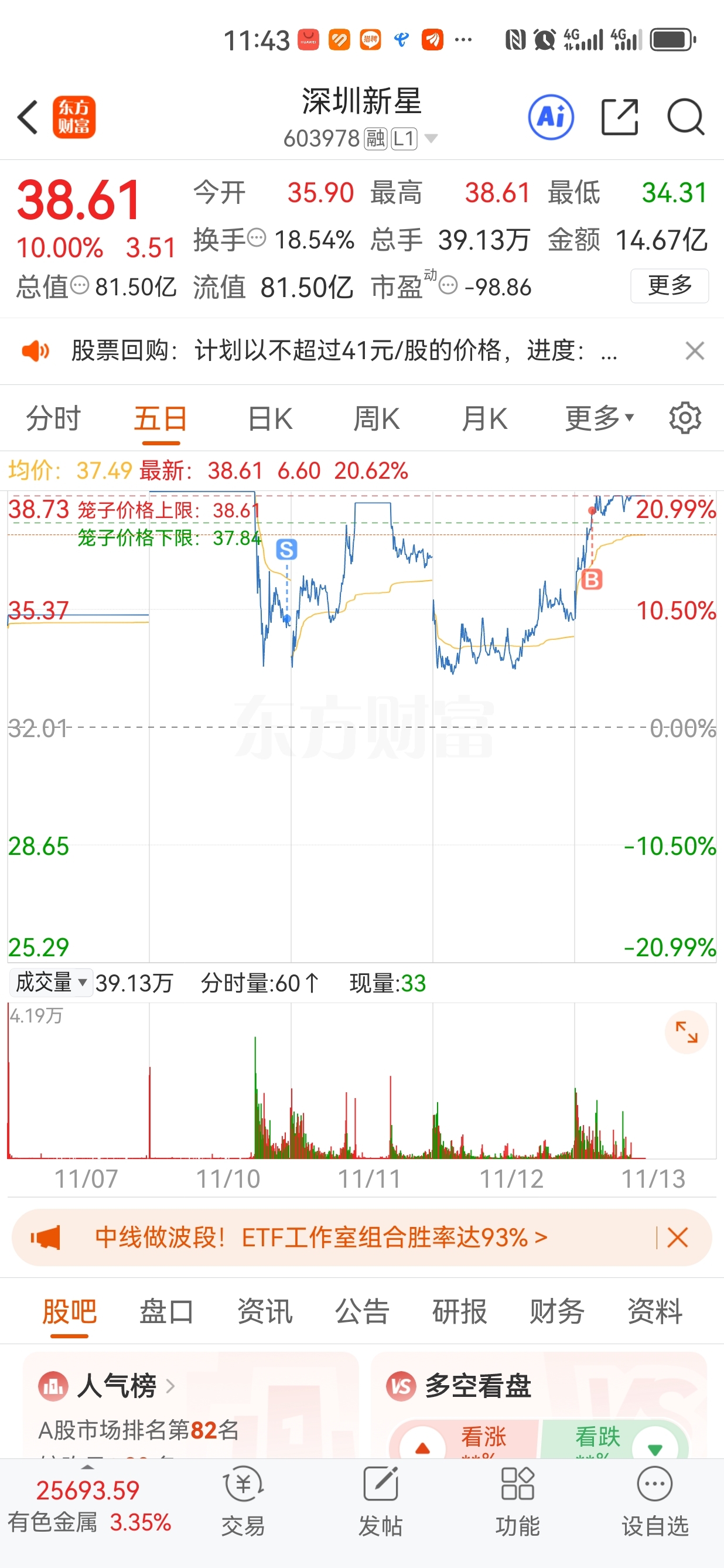 $深圳新星(SH603978)$ 挨打要立正,只做右侧交易!卖飞我也要接回来