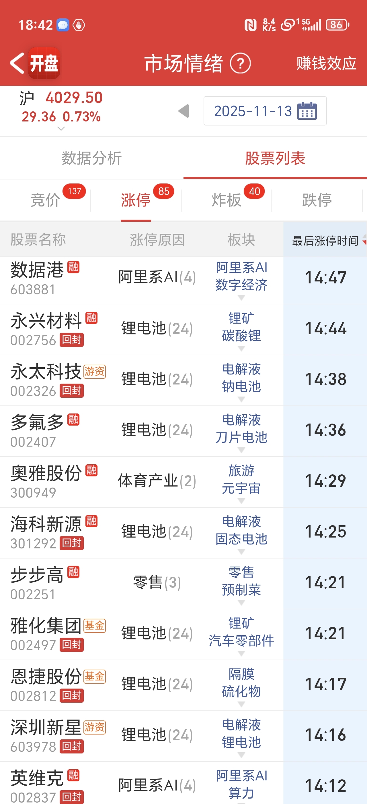 深圳新星回封以后,电池方向上十个票回封或者涨停,这个节点很好啊,明天弱转强,应该