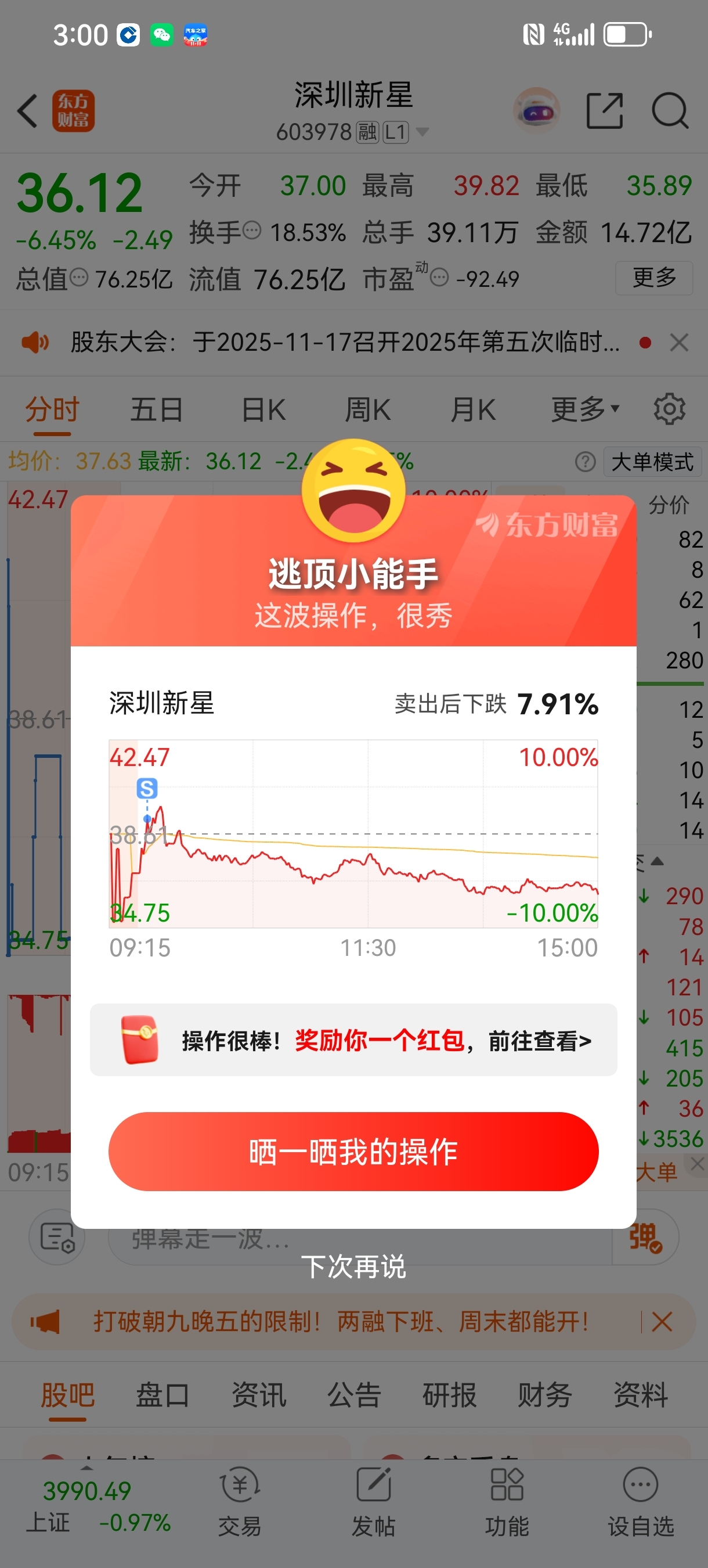 $深圳新星(SH603978)$ 还好拉起来跑了